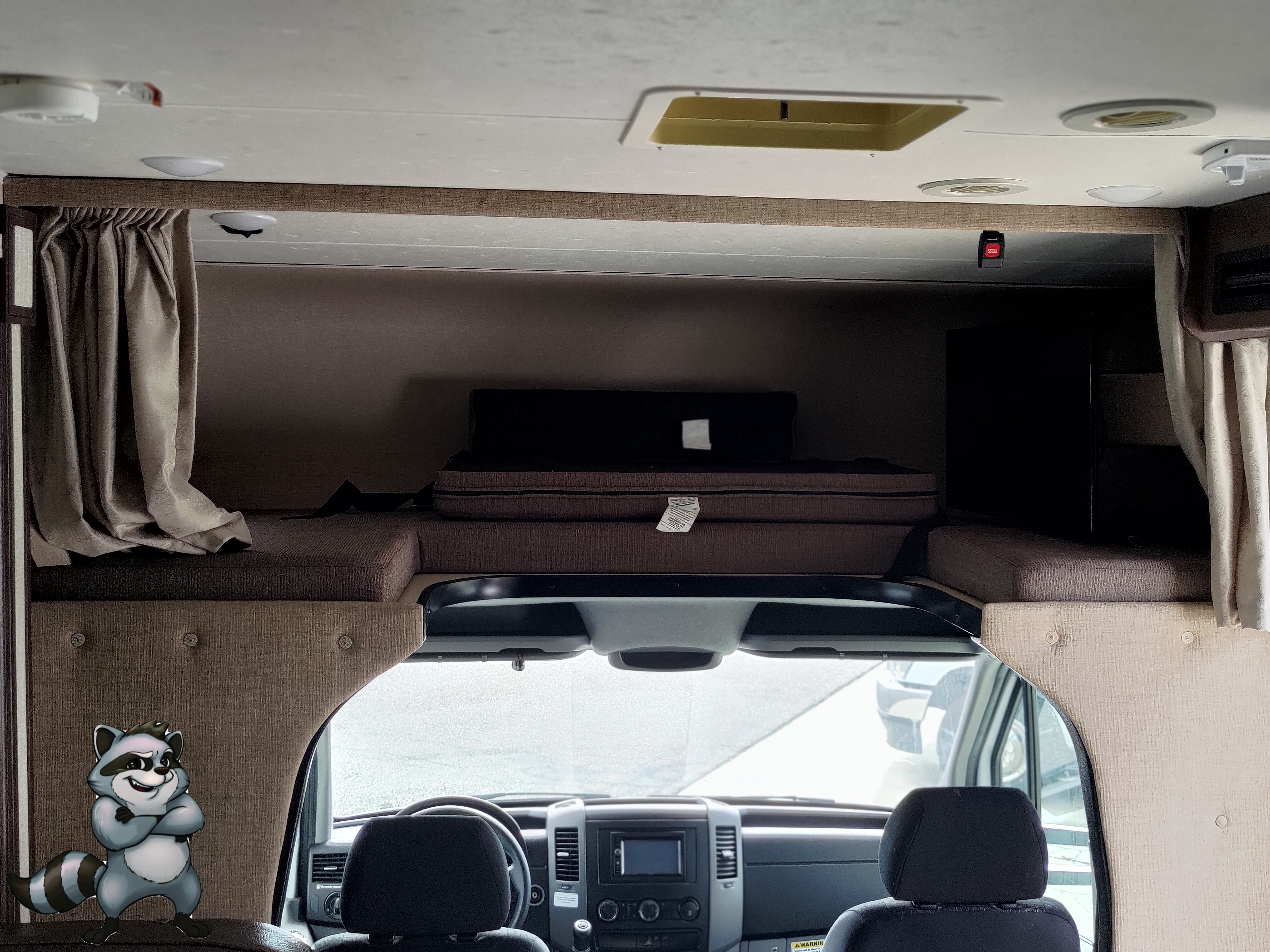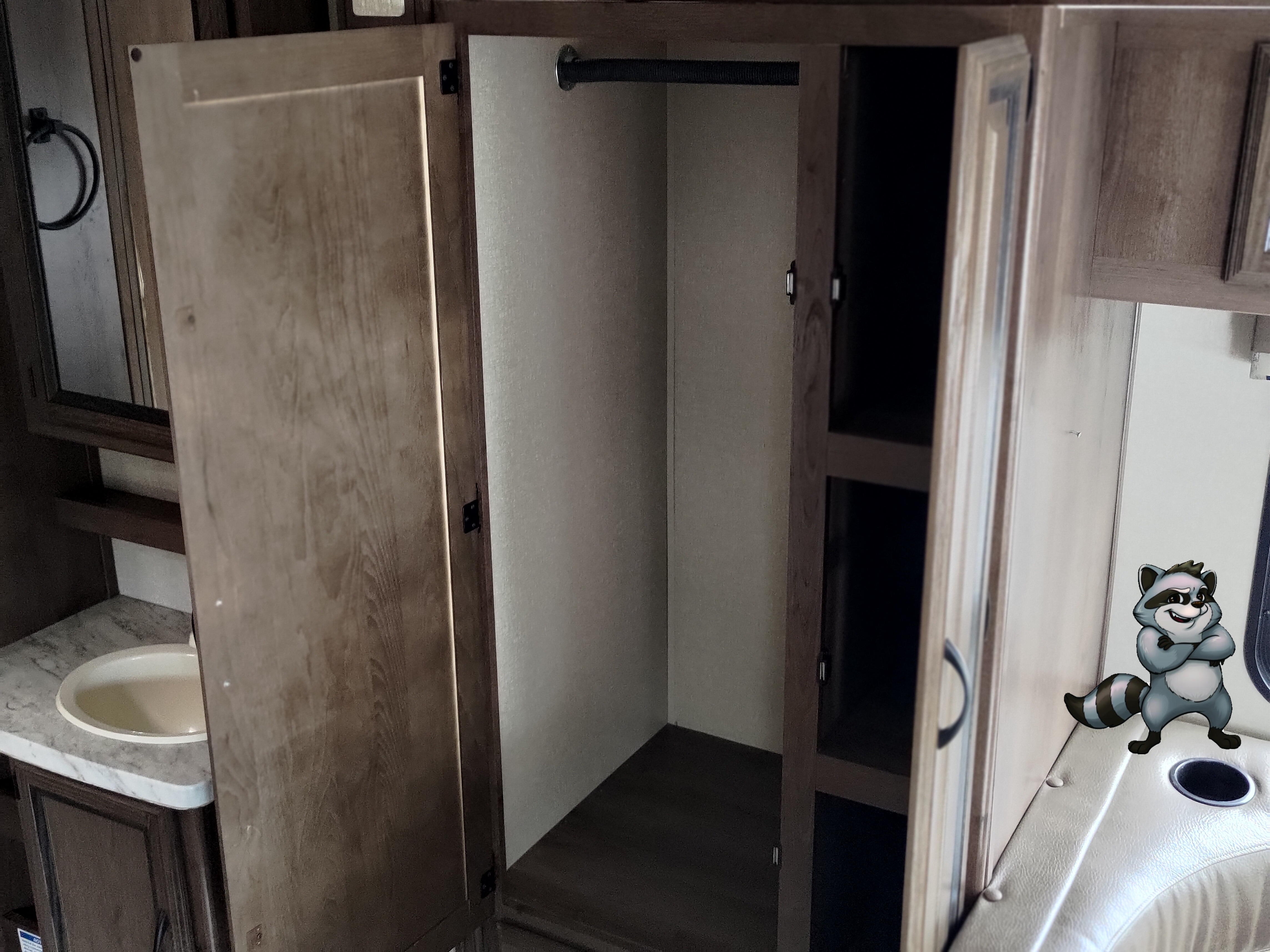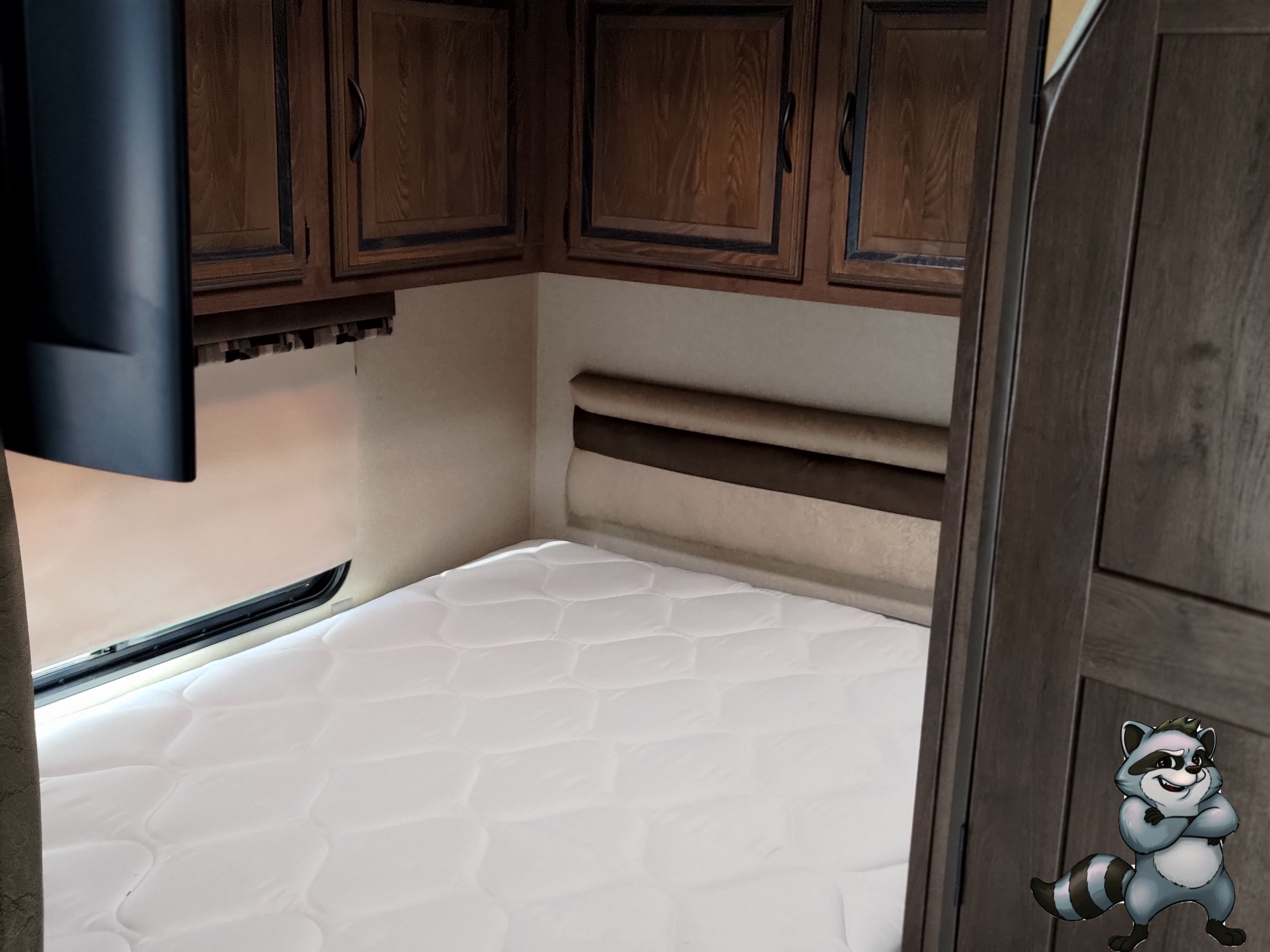 - Rear Queen Bed with overhead cabinets and bedside wardrobe