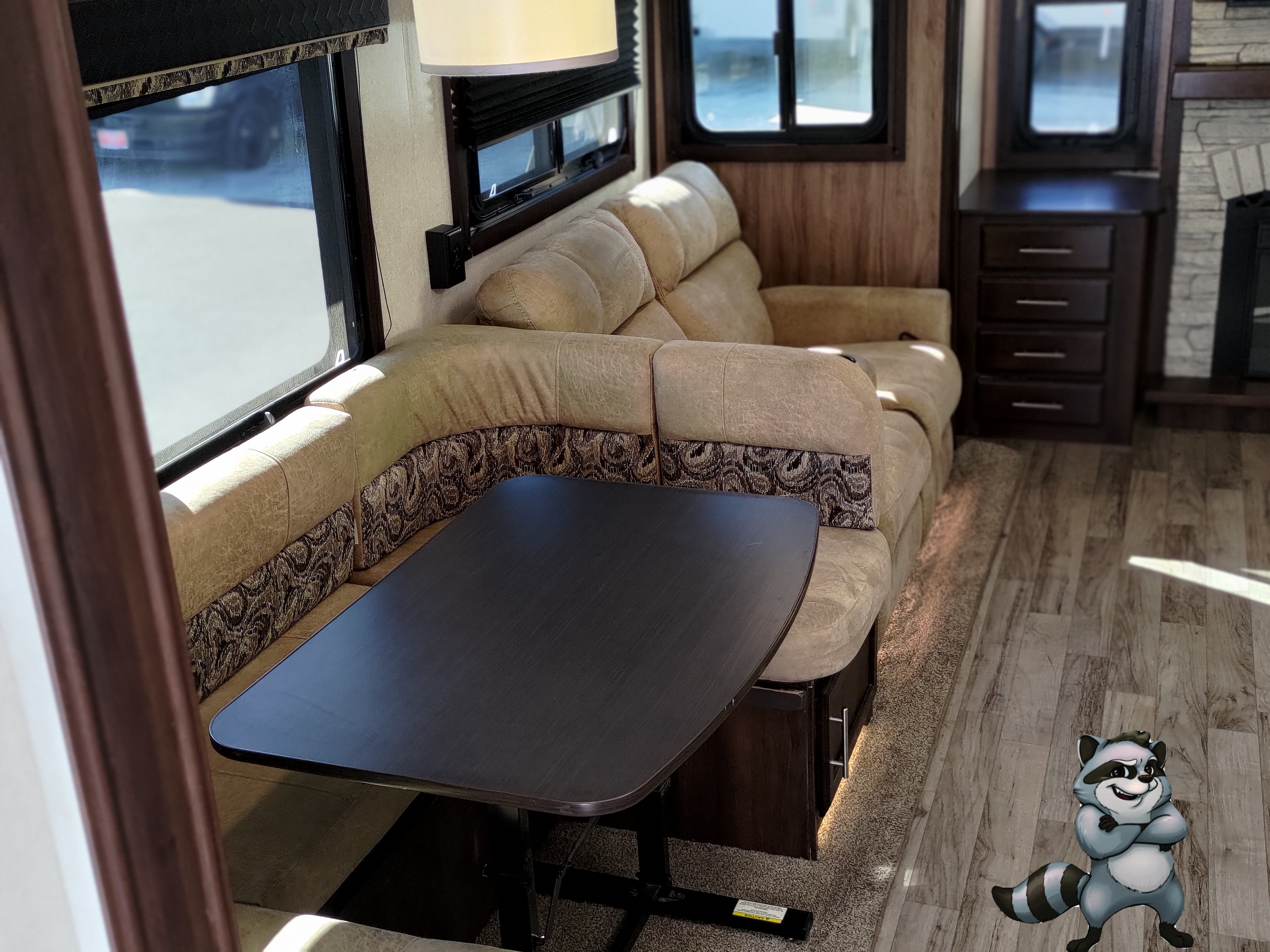 - Tri-Fold Sofa + Theater Seating with panoramic windows