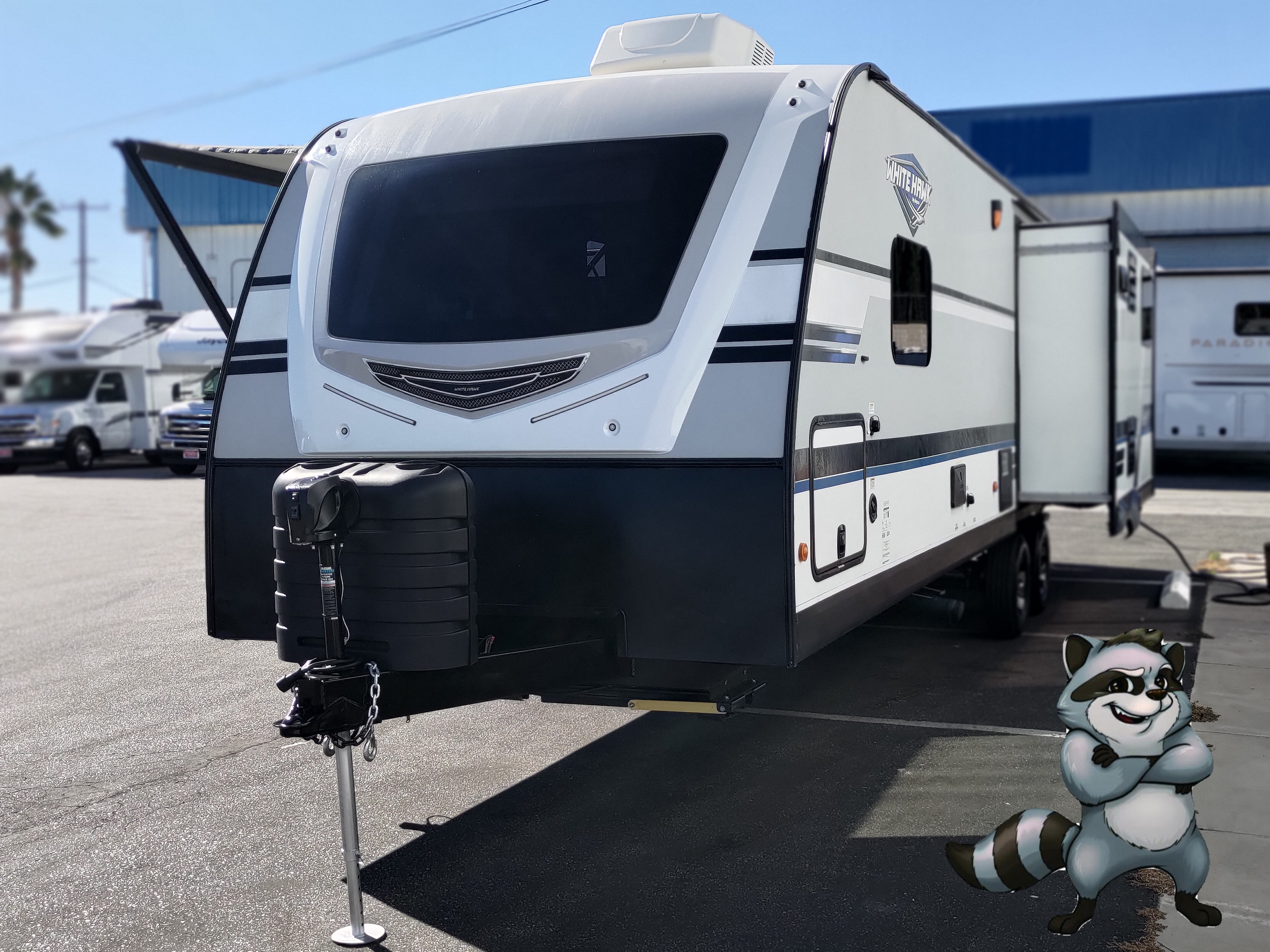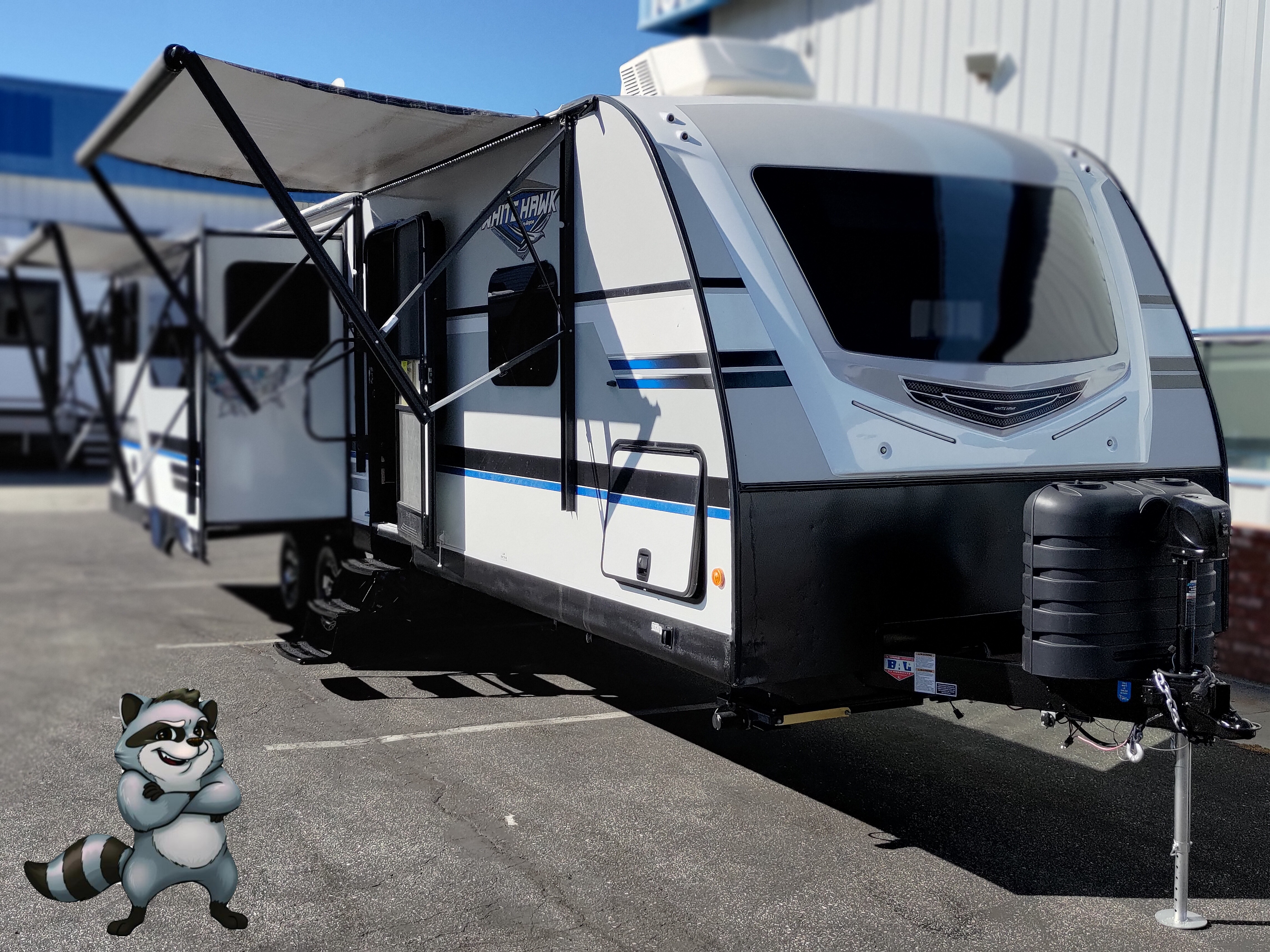 - Electric Stabilizer Jacks, 14' power awning, and exterior pass-through storage