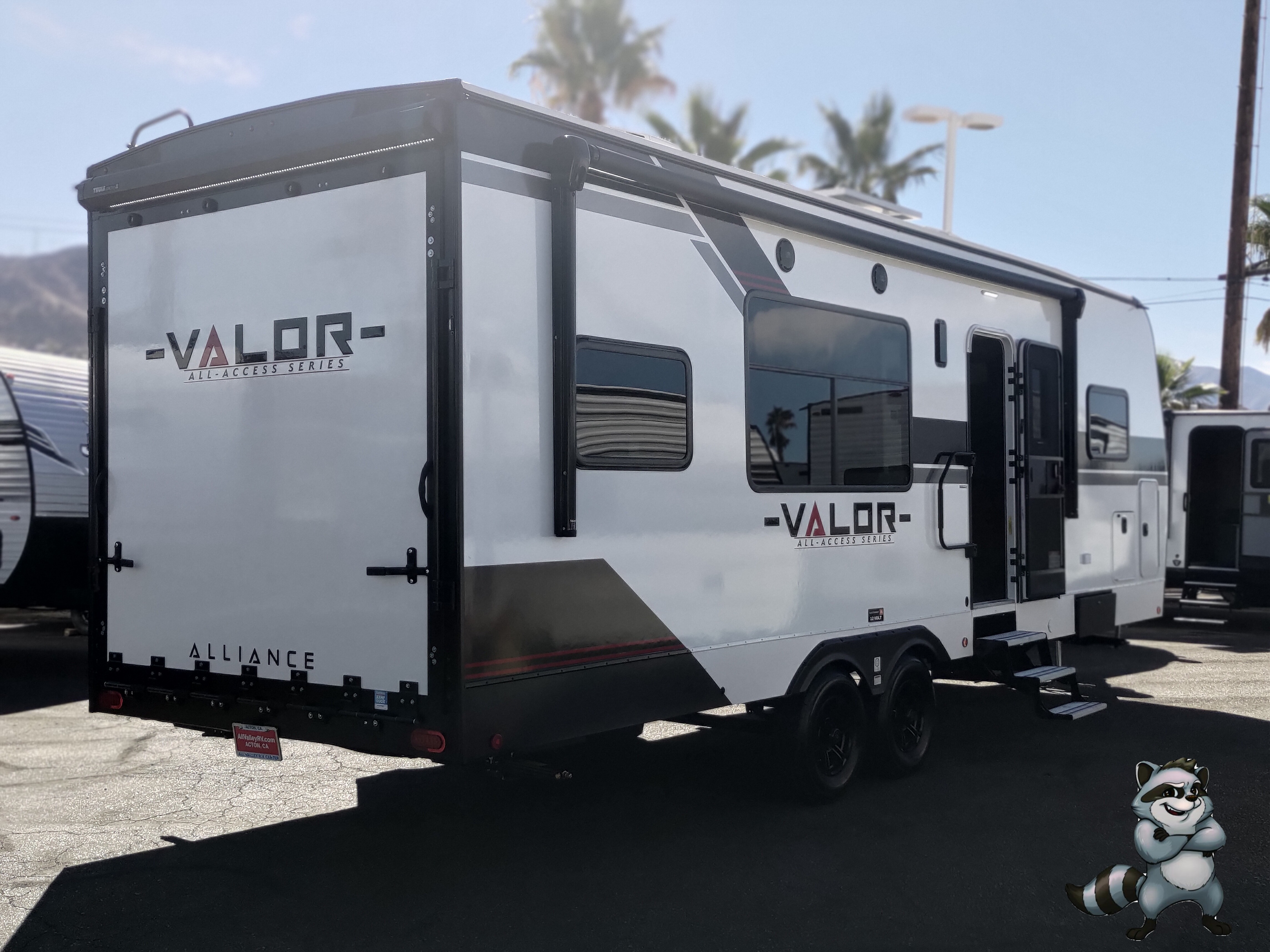 Built for adventure. Designed for comfort. Ready to haul. The 2026 Alliance Valor 27T14 is a premium toy hauler travel trailer that blends residential luxury with gear-hauling versatility. With a spacious 14' garage, upscale kitchen, and full-time-ready construction, this model is perfect for couples who want to bring their toys — and live in style.