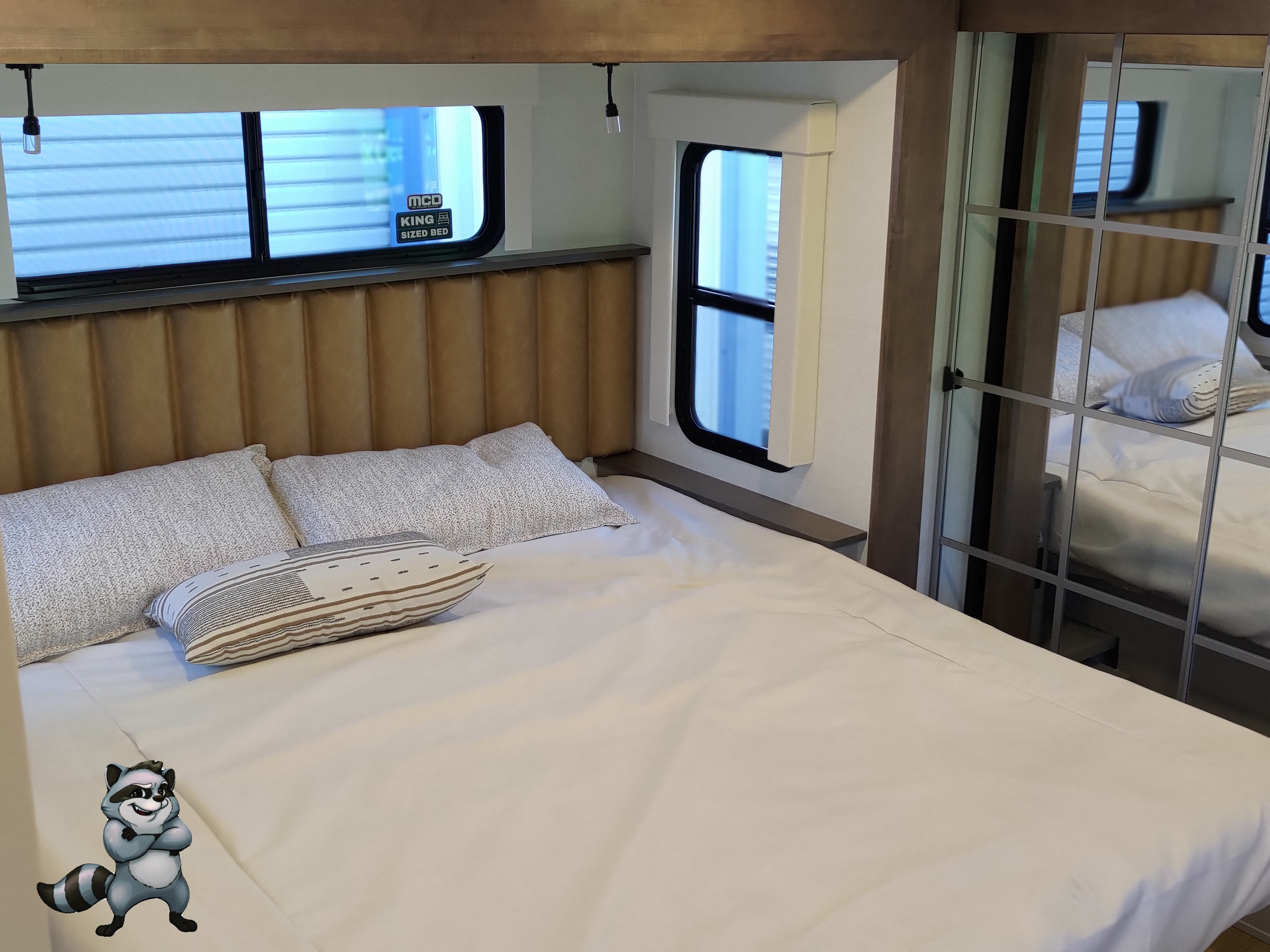 - King Bed Slide-Out with walk-around access, underbed storage, and reading lights