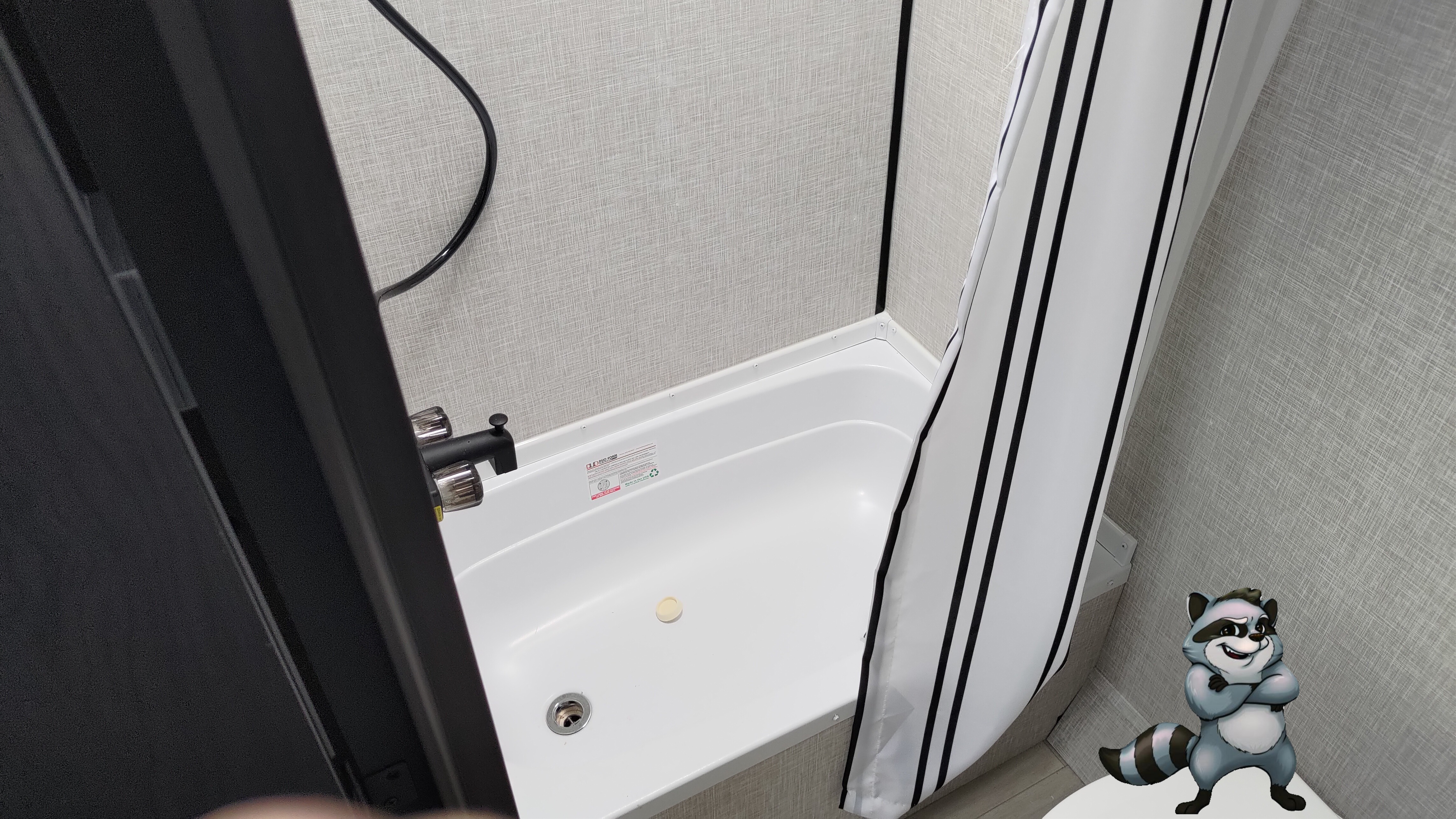 - Full Bathroom with tub/shower combo and foot-flush toilet