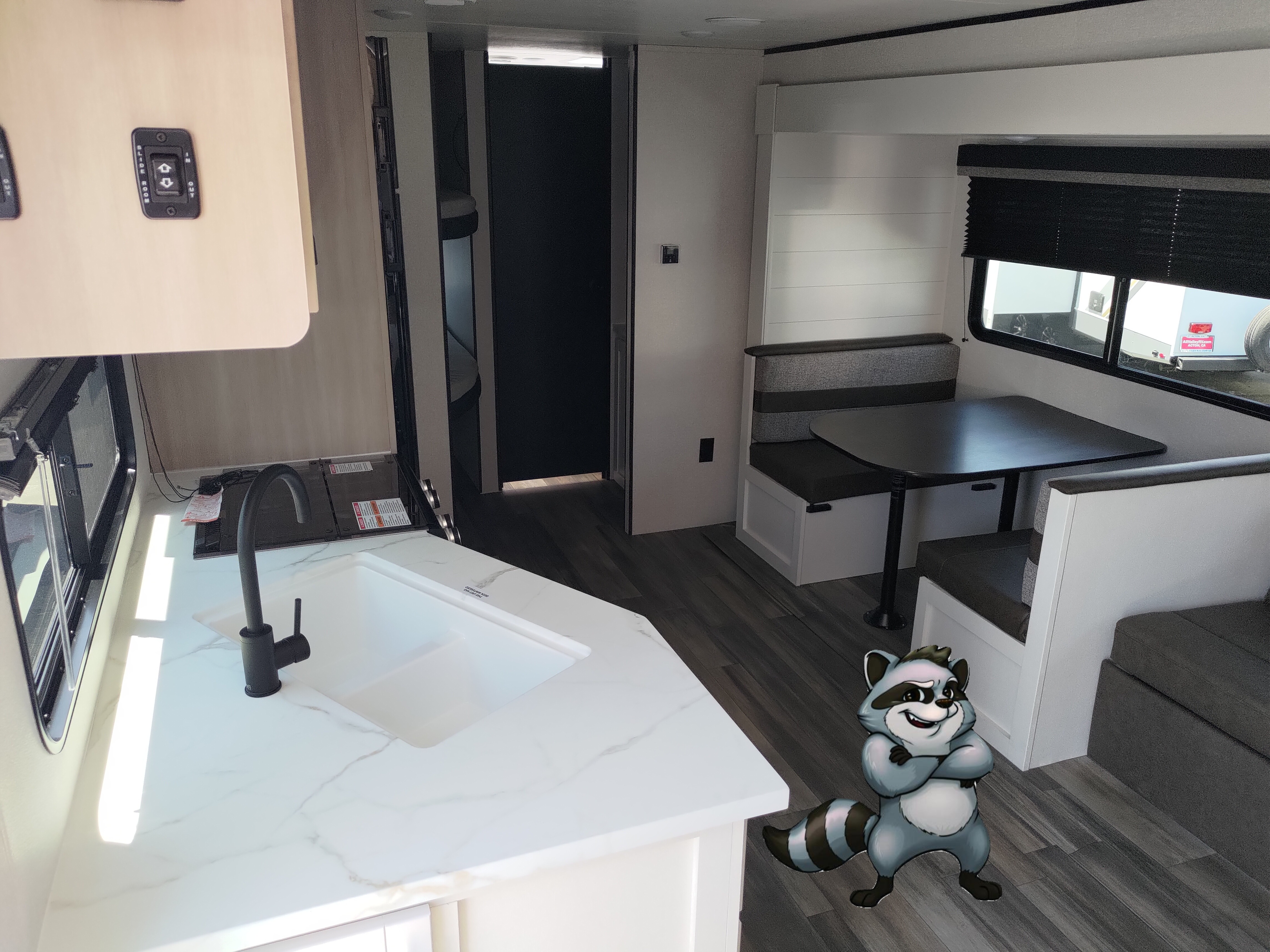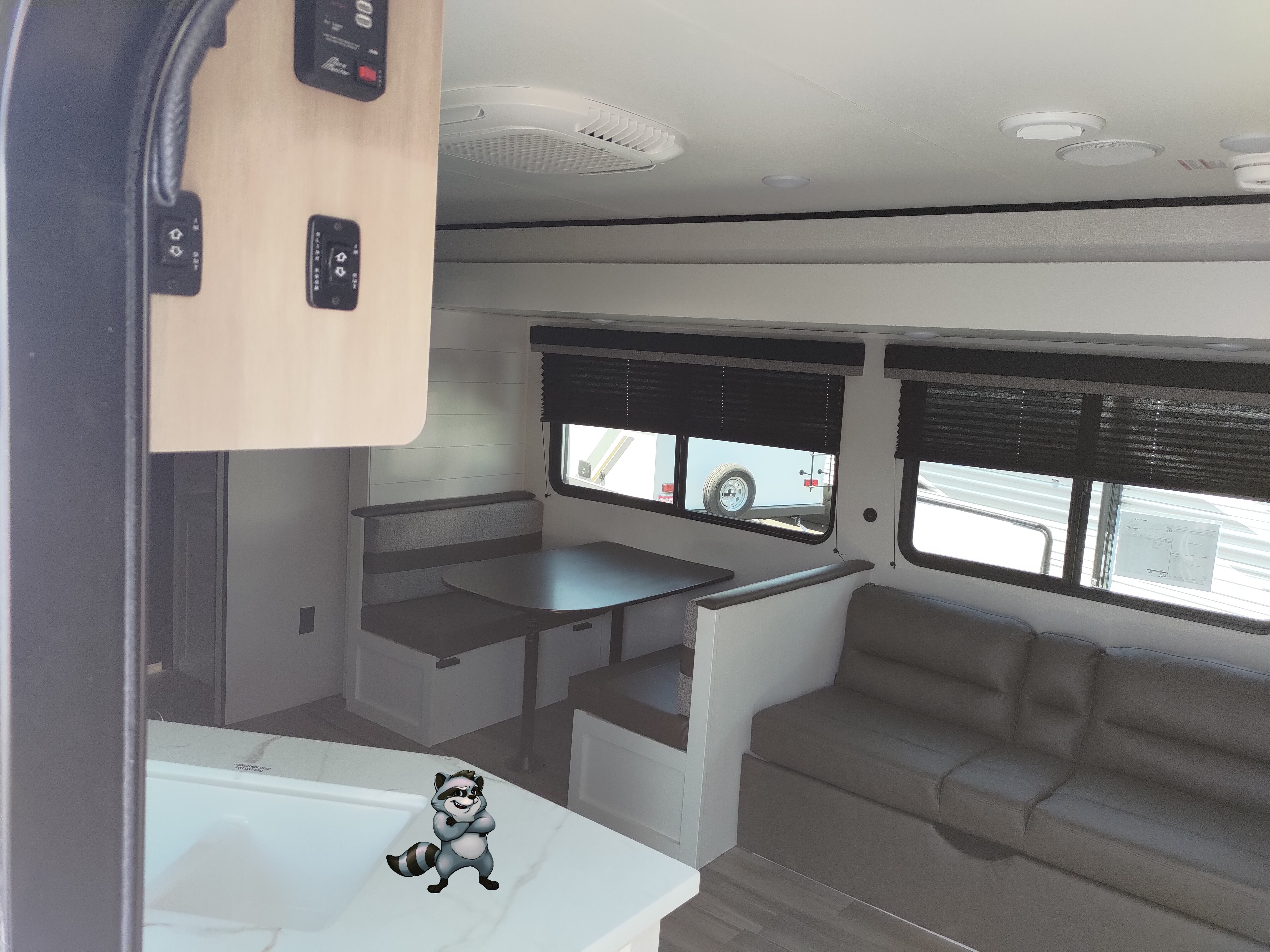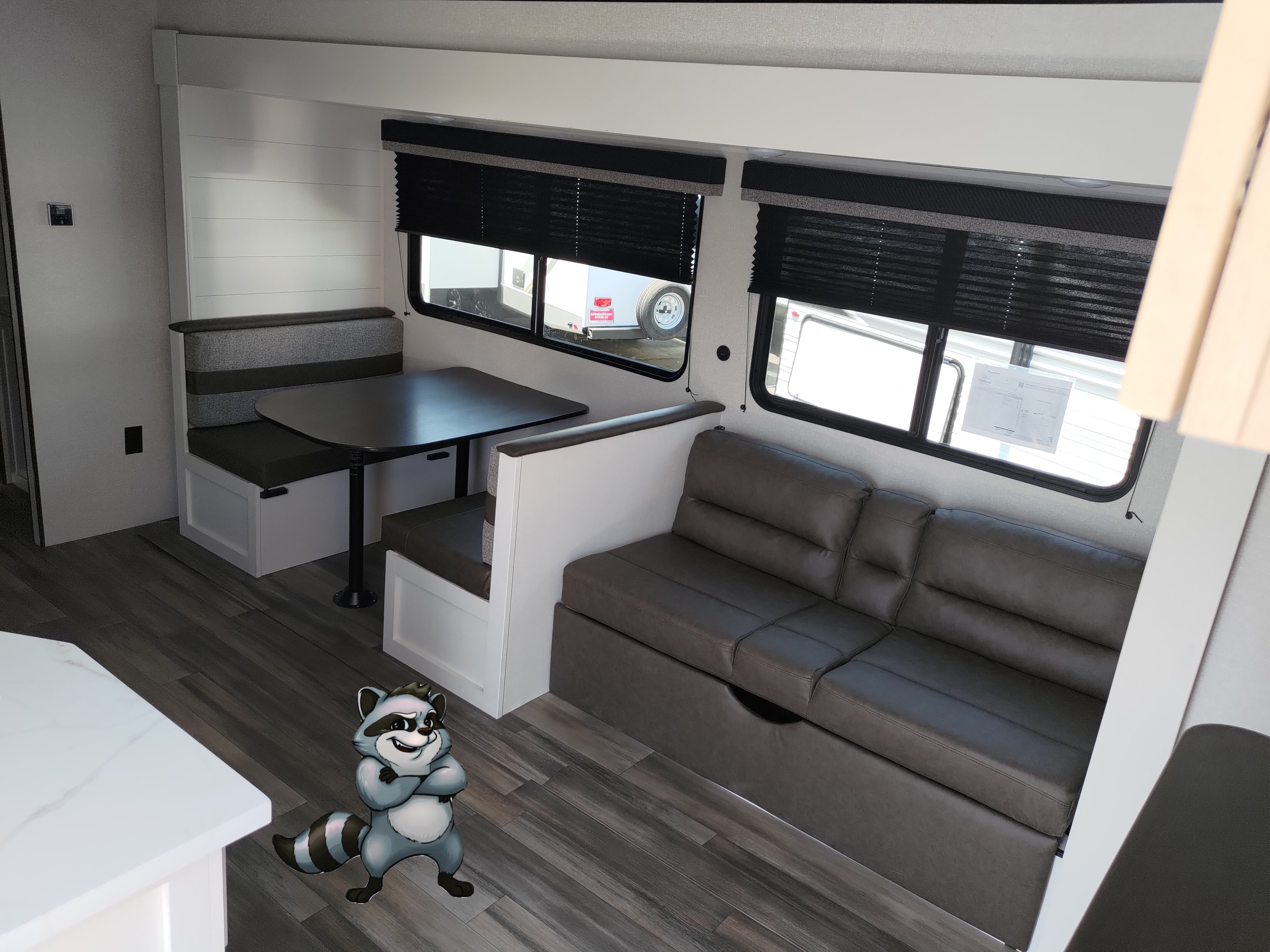 - Large slide with U‑dinette or sofa/dinette (varies by package)