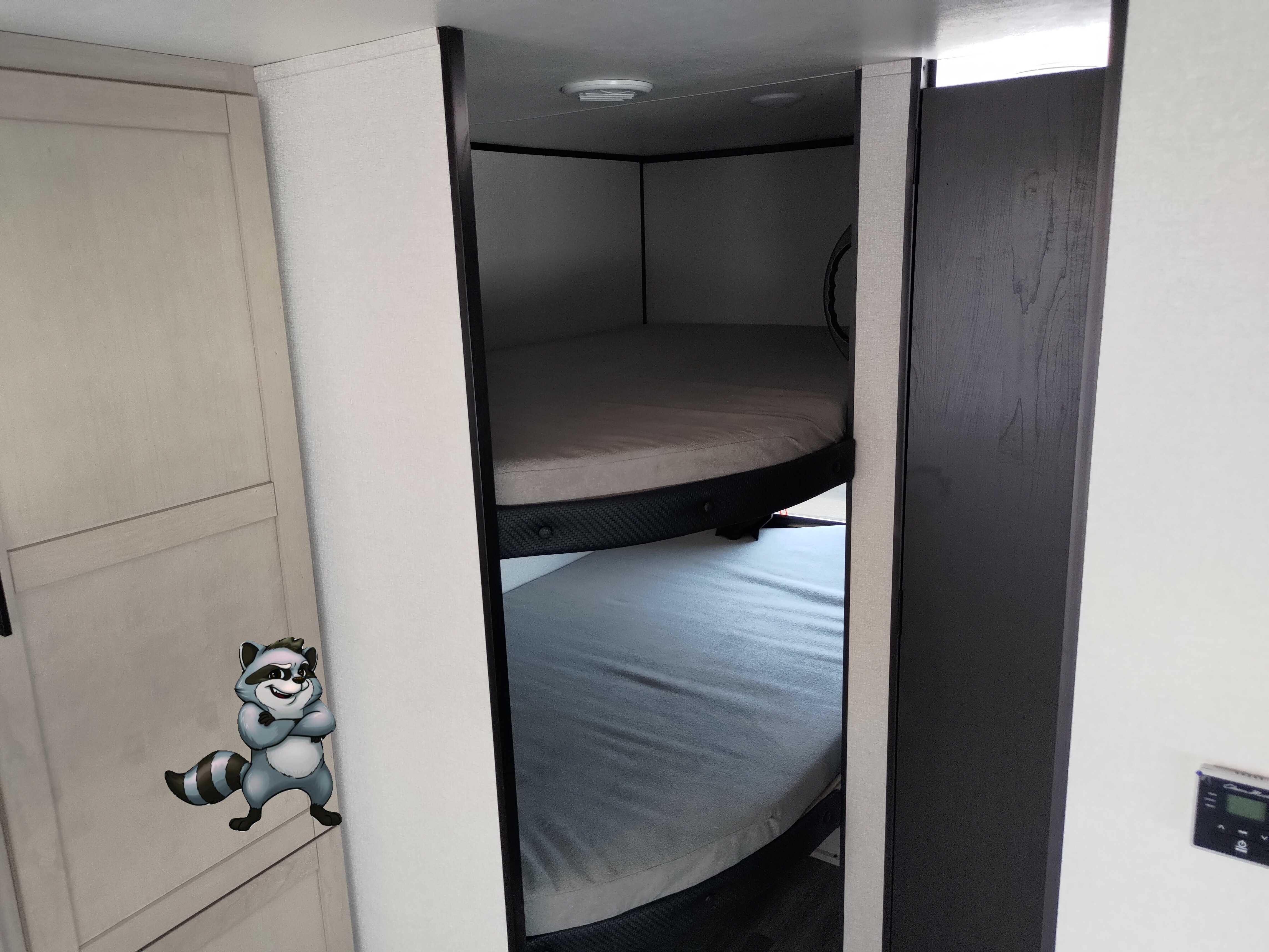 The 2026 Open Range 26DBS is a feature‑rich bunkhouse travel trailer built for families who want comfort, storage, and Highland Ridge’s upgraded construction in a tow‑friendly footprint. With double‑over‑double bunks, a private front bedroom, a large slide‑out, and an outdoor kitchen, this model delivers everything families need for weekend camping or long‑term adventures.