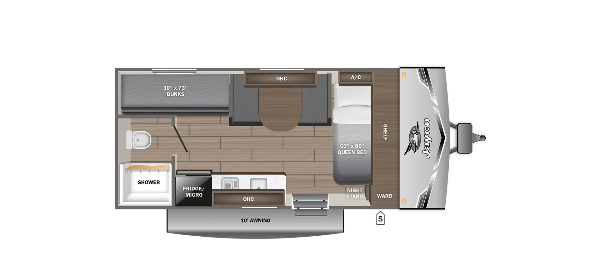 Compact. Capable. Built to roam. The 2026 Jay Flight SLX 170BHW is a single-axle bunkhouse travel trailer that blends smart design with Jayco’s legendary build quality. With sleeping for up to 5, a full rear bath, and solar prep, this unit is perfect for weekend escapes or national park tours.