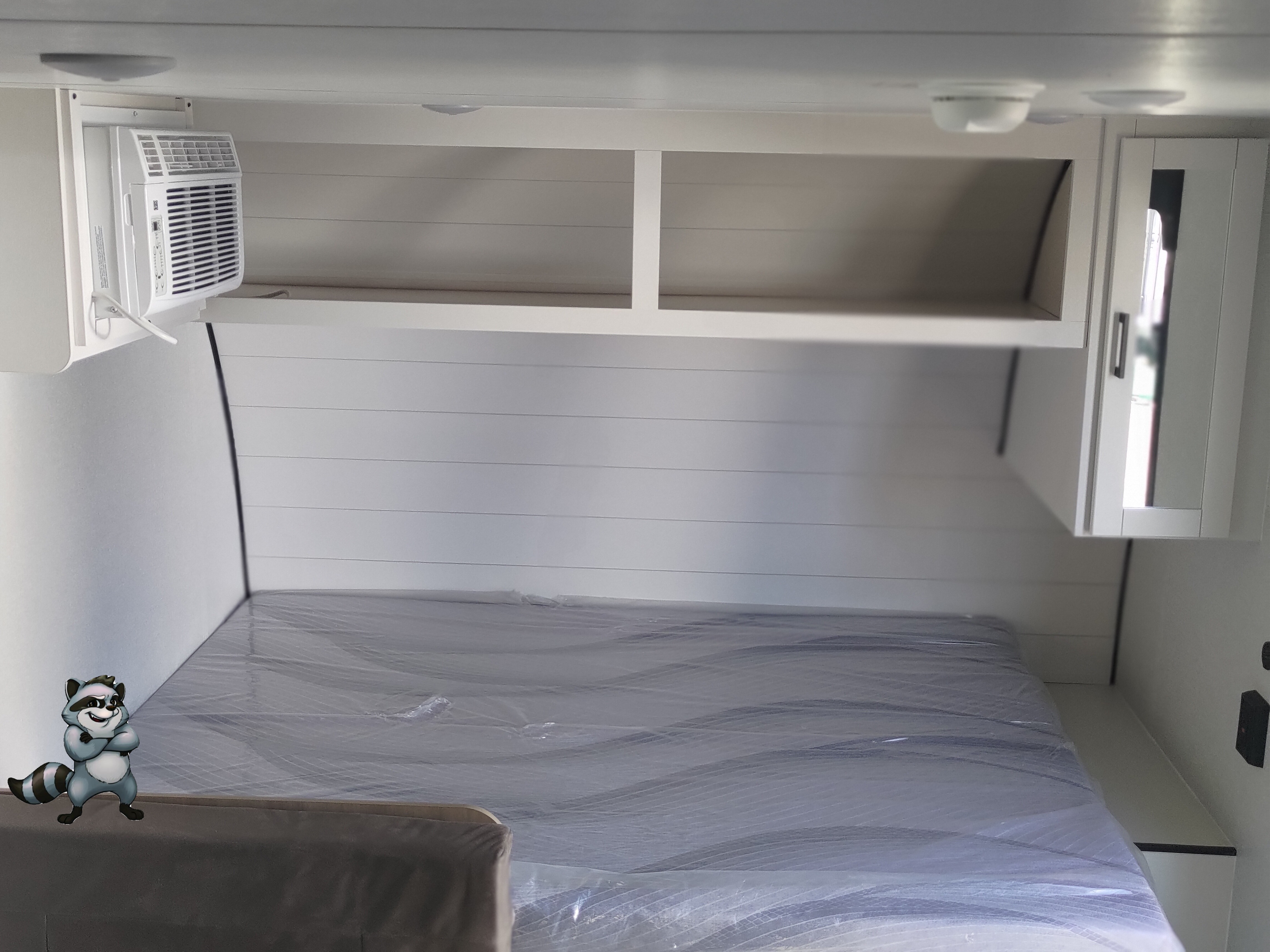 - Front Queen Bed with overhead cabinets and dual nightstands