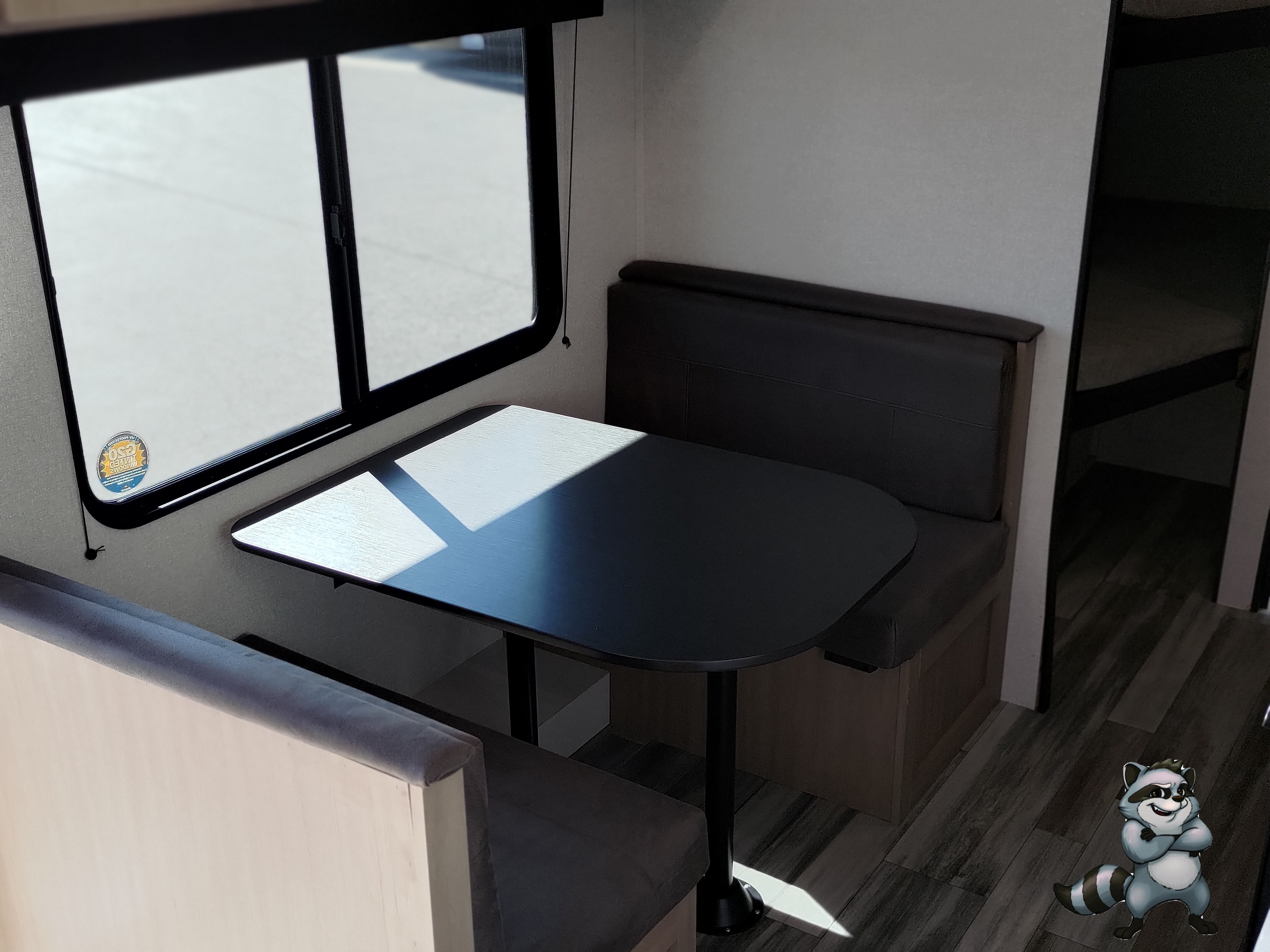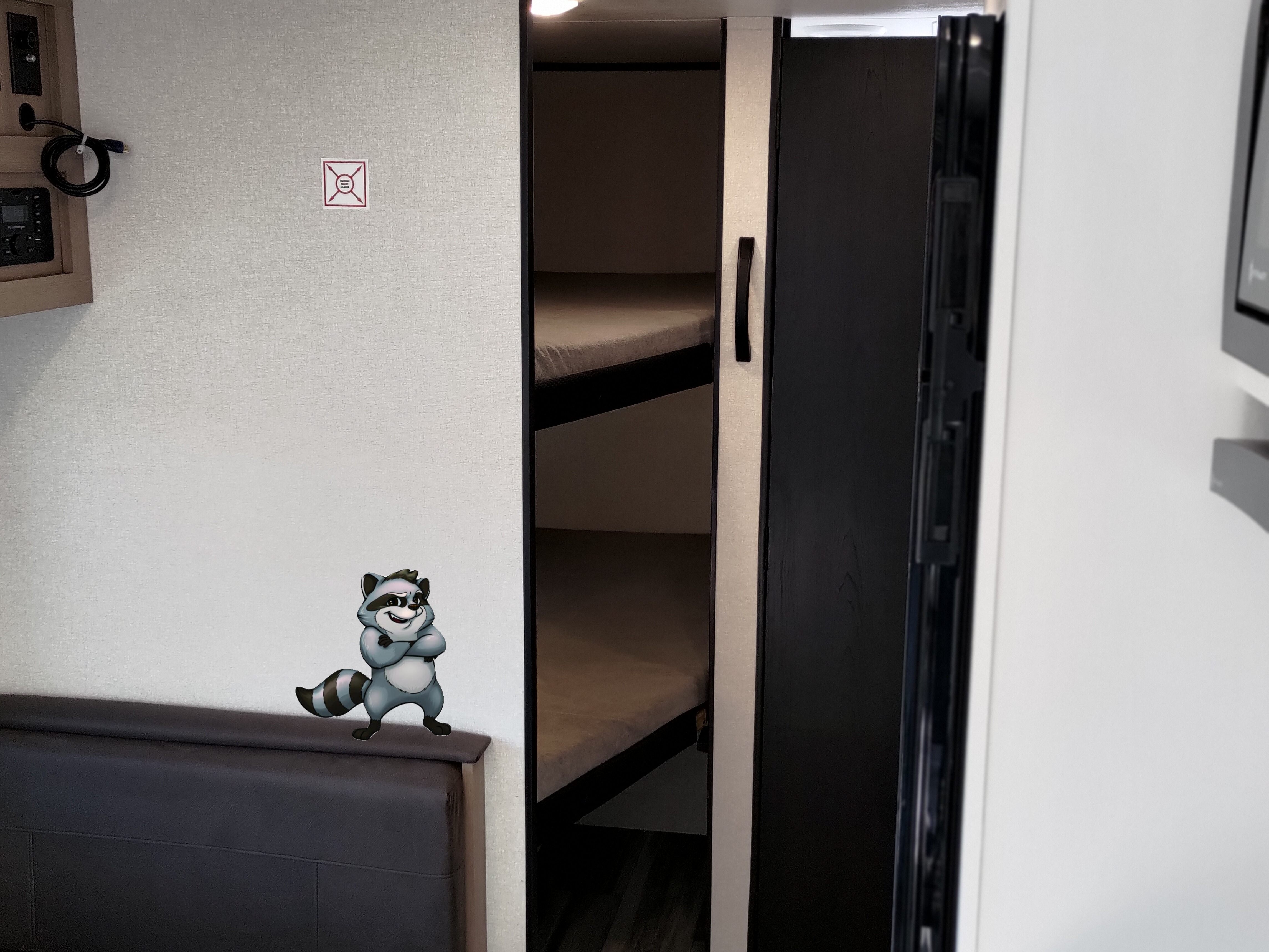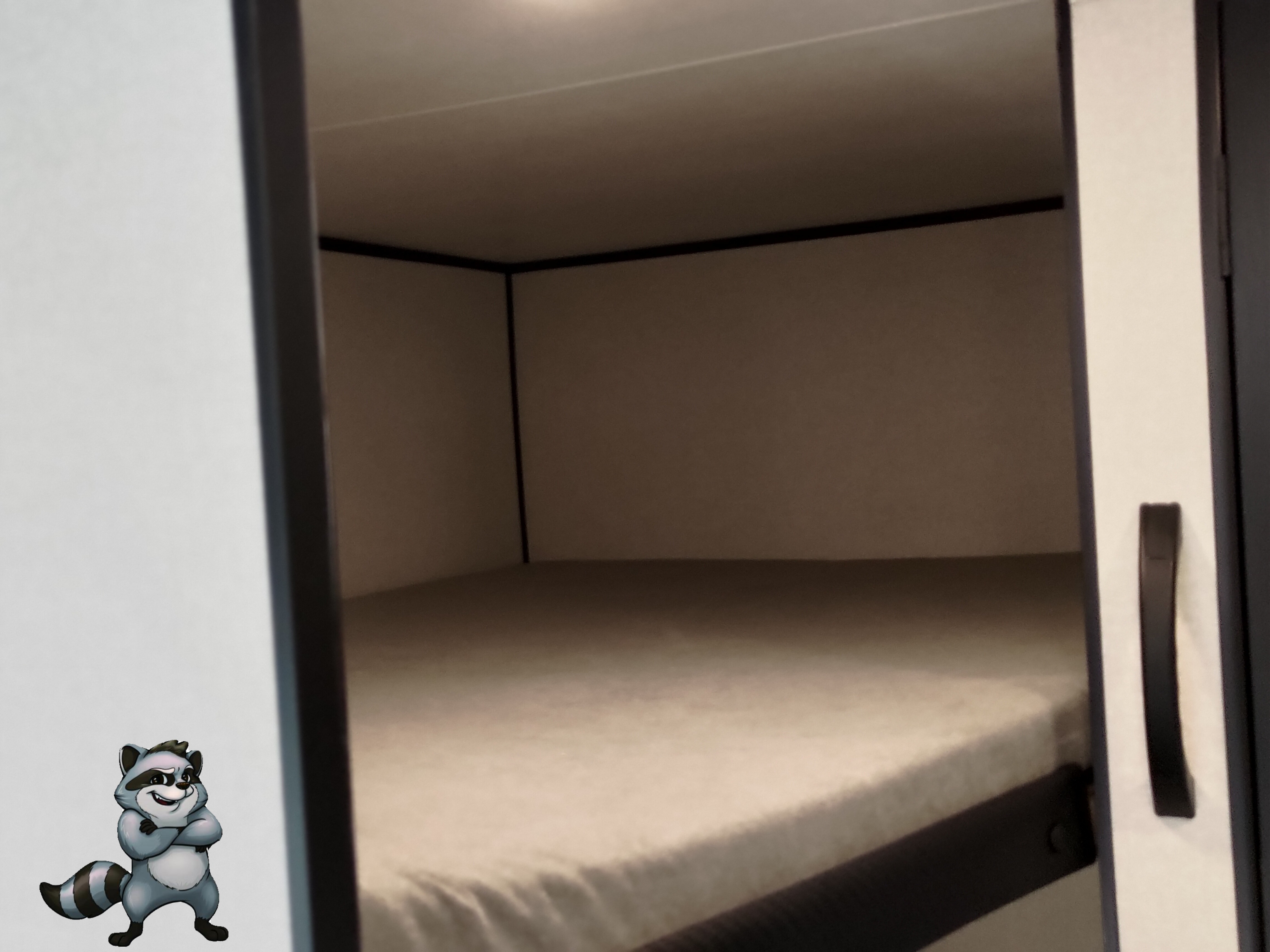 - Double-Over-Double Rear Bunks with privacy curtain and built-in storage