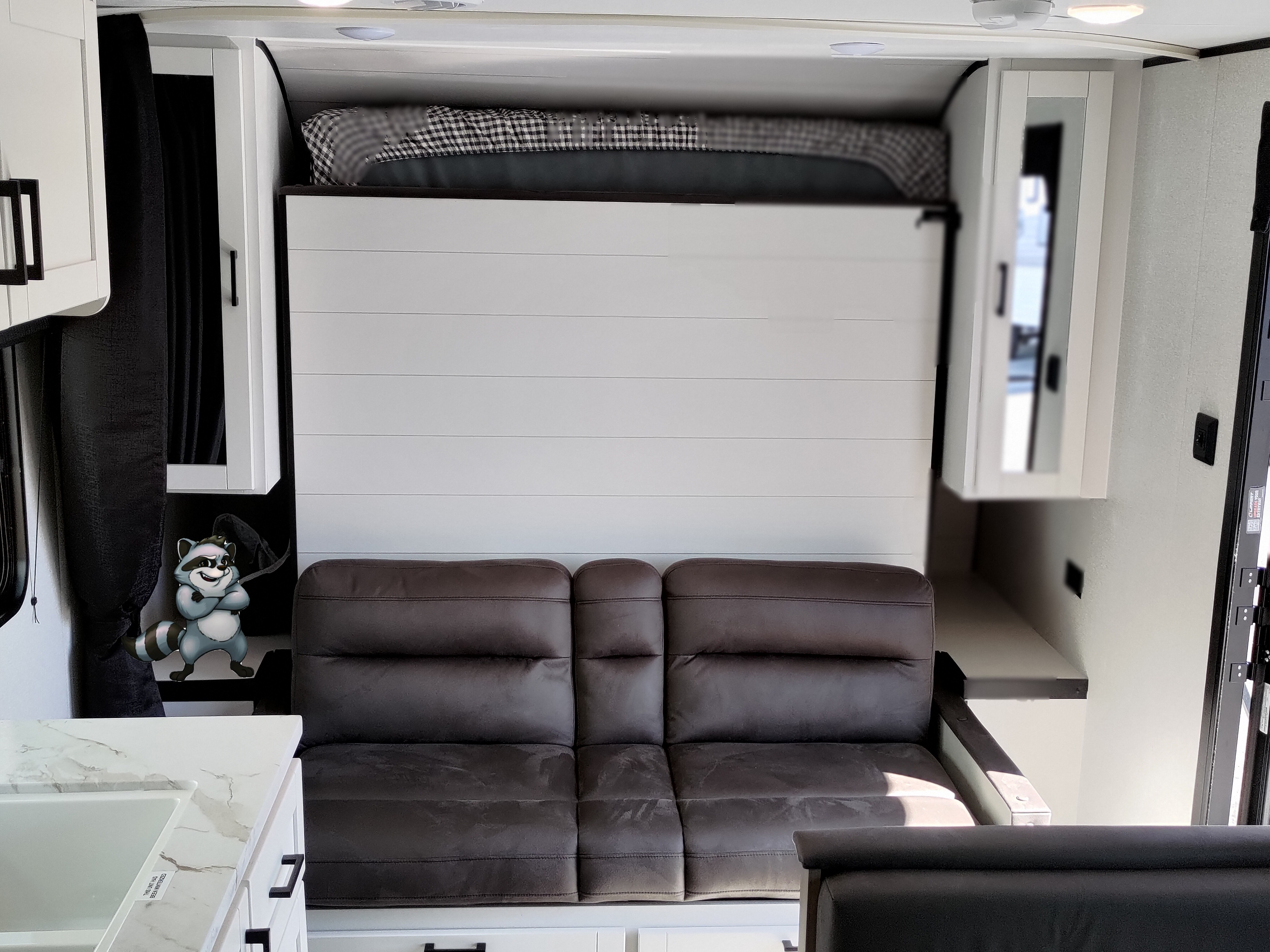- Front Murphy Bed folds down over a jack-knife sofa for day-to-night versatility