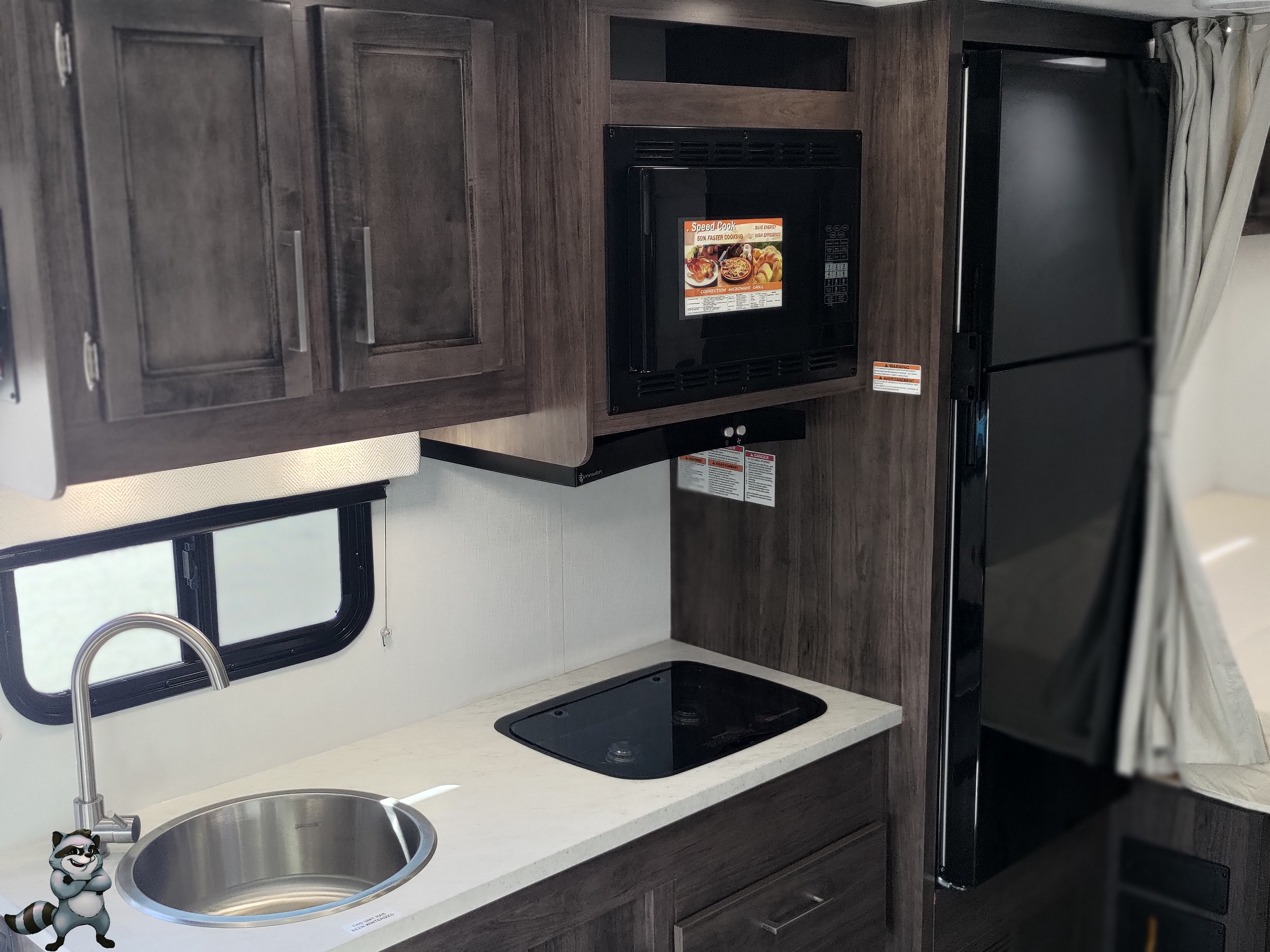 - 10 cu. ft. 12V Refrigerator, 2-burner cooktop, and microwave