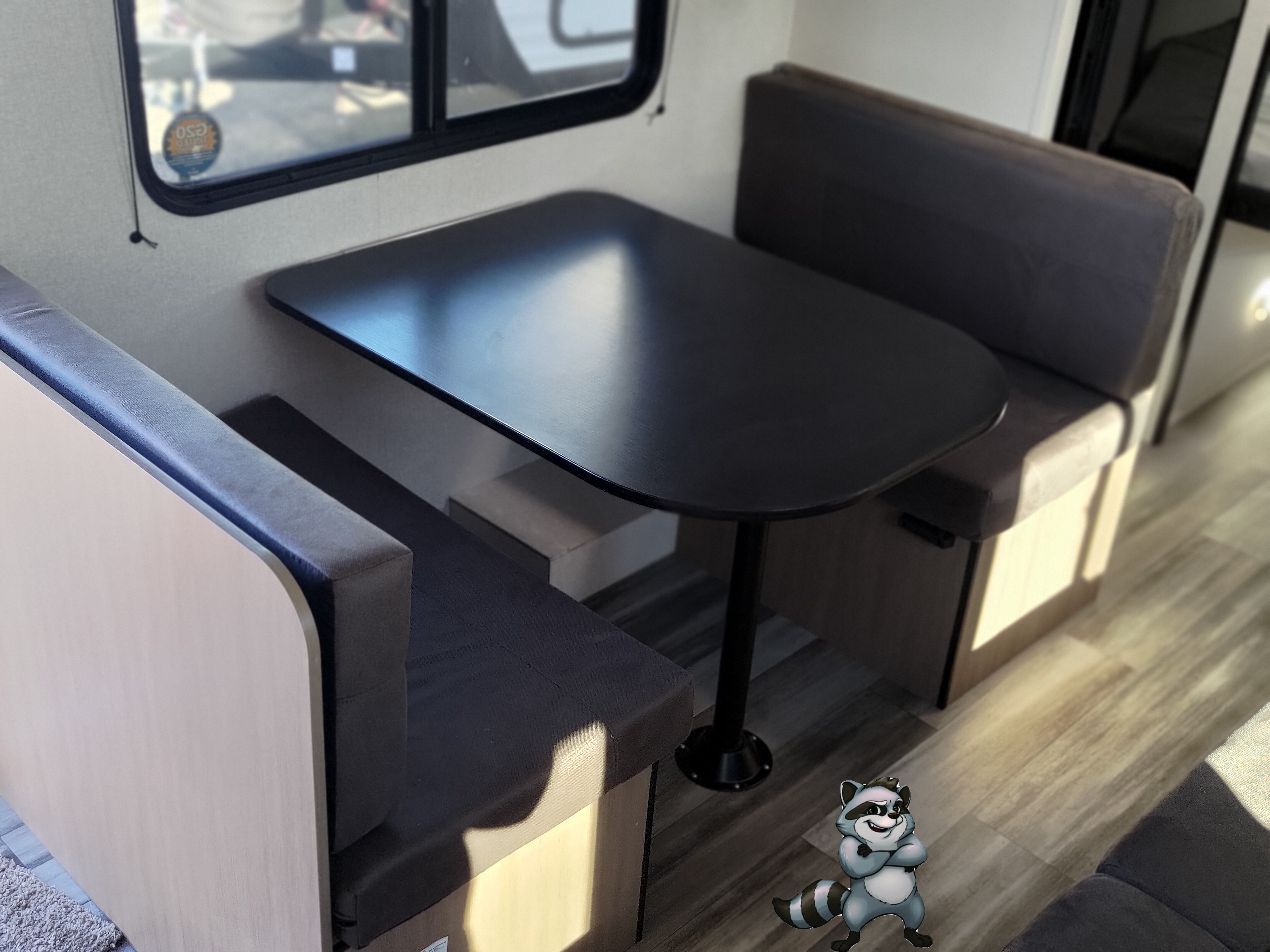 - Booth Dinette + Jack‑Knife Sofa convert for extra sleeping space