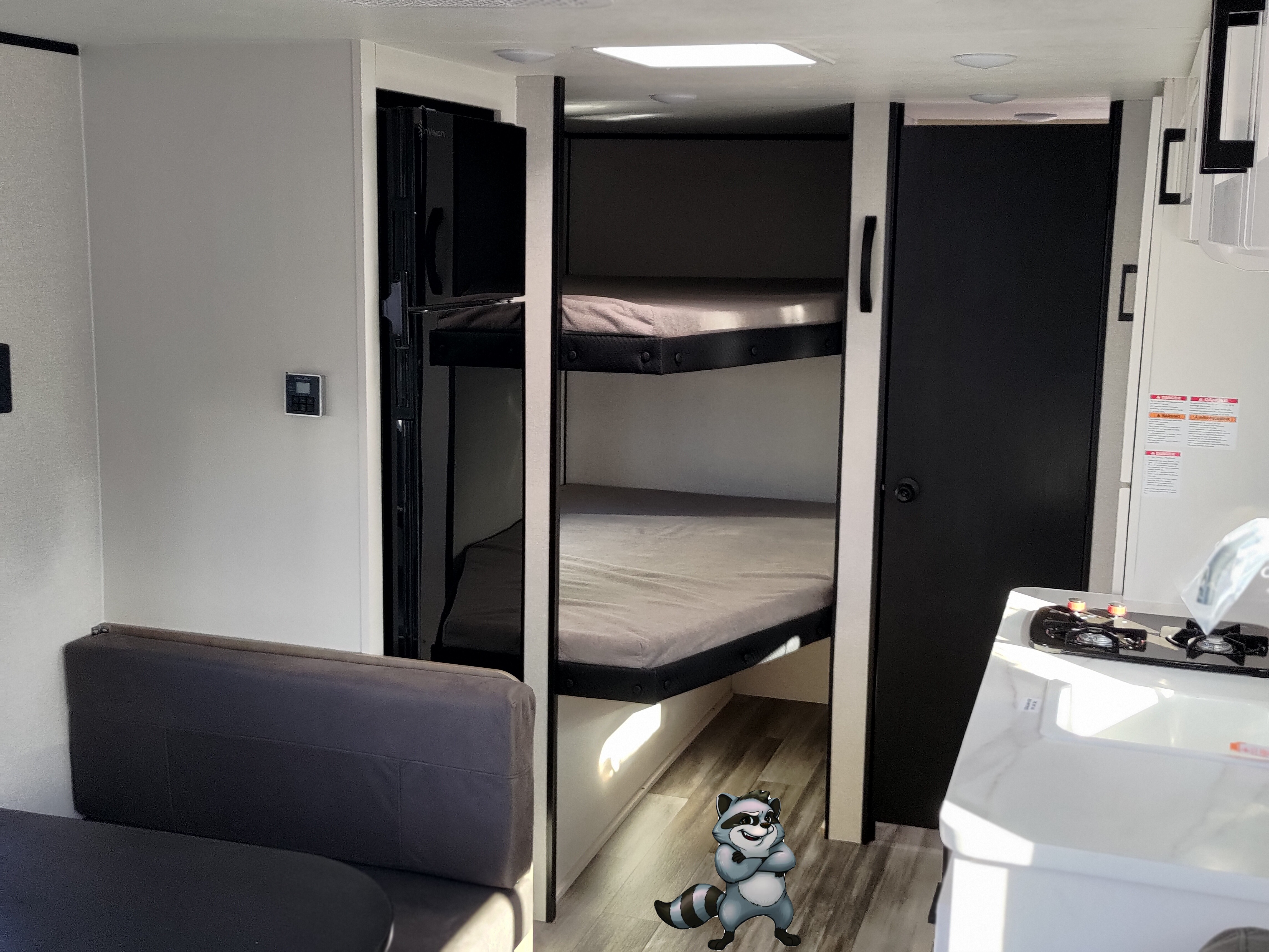 The 2026 Jay Flight SLX 250BHW delivers a smart, no‑slide bunkhouse layout that keeps weight down while maximizing sleeping capacity. With double‑over‑double bunks, a private front queen bedroom, and an 84‑gallon fresh water tank, this model is perfect for families who want capability, durability, and easy towing.