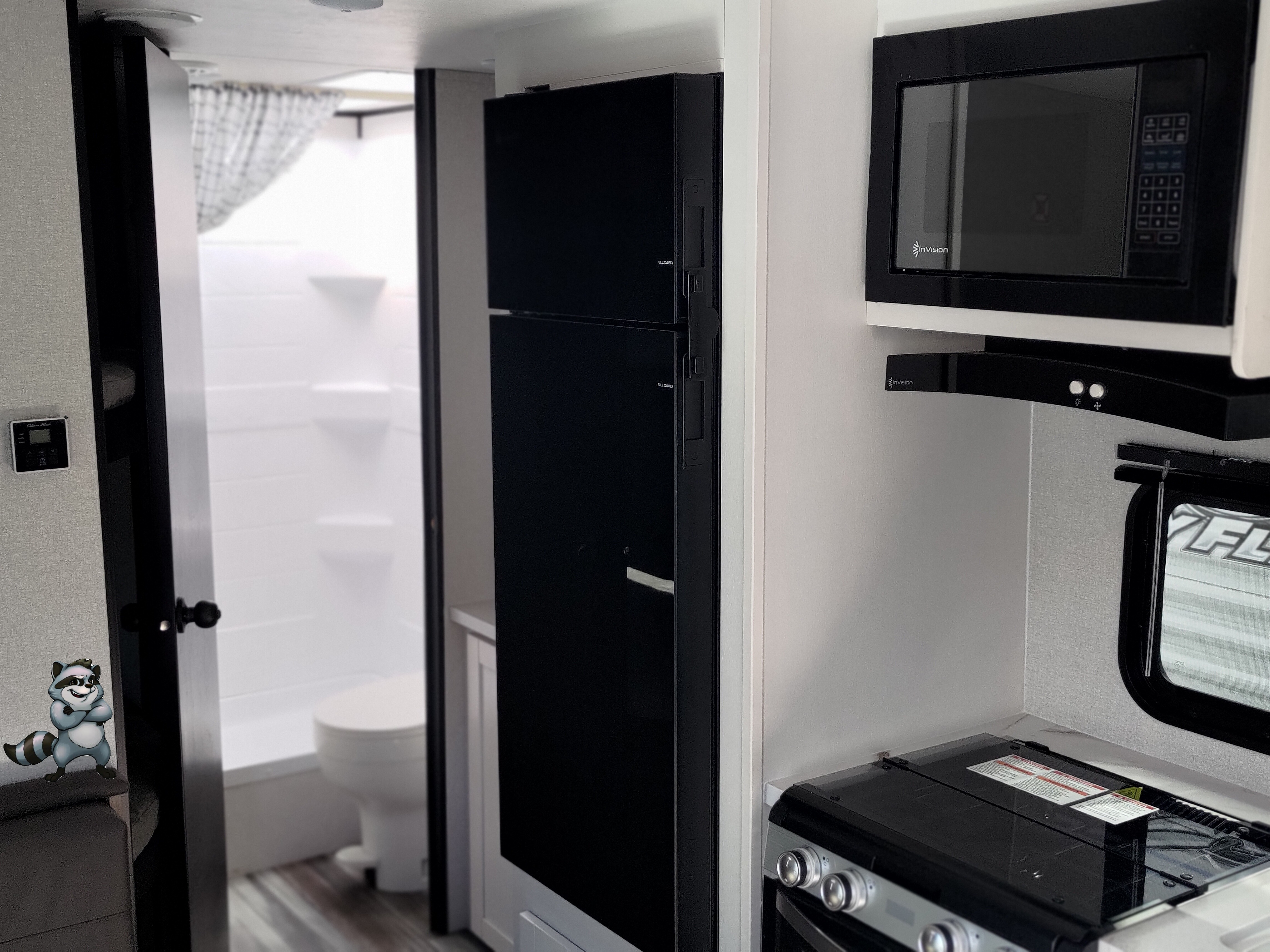- 3‑burner cooktop + oven + microwave
