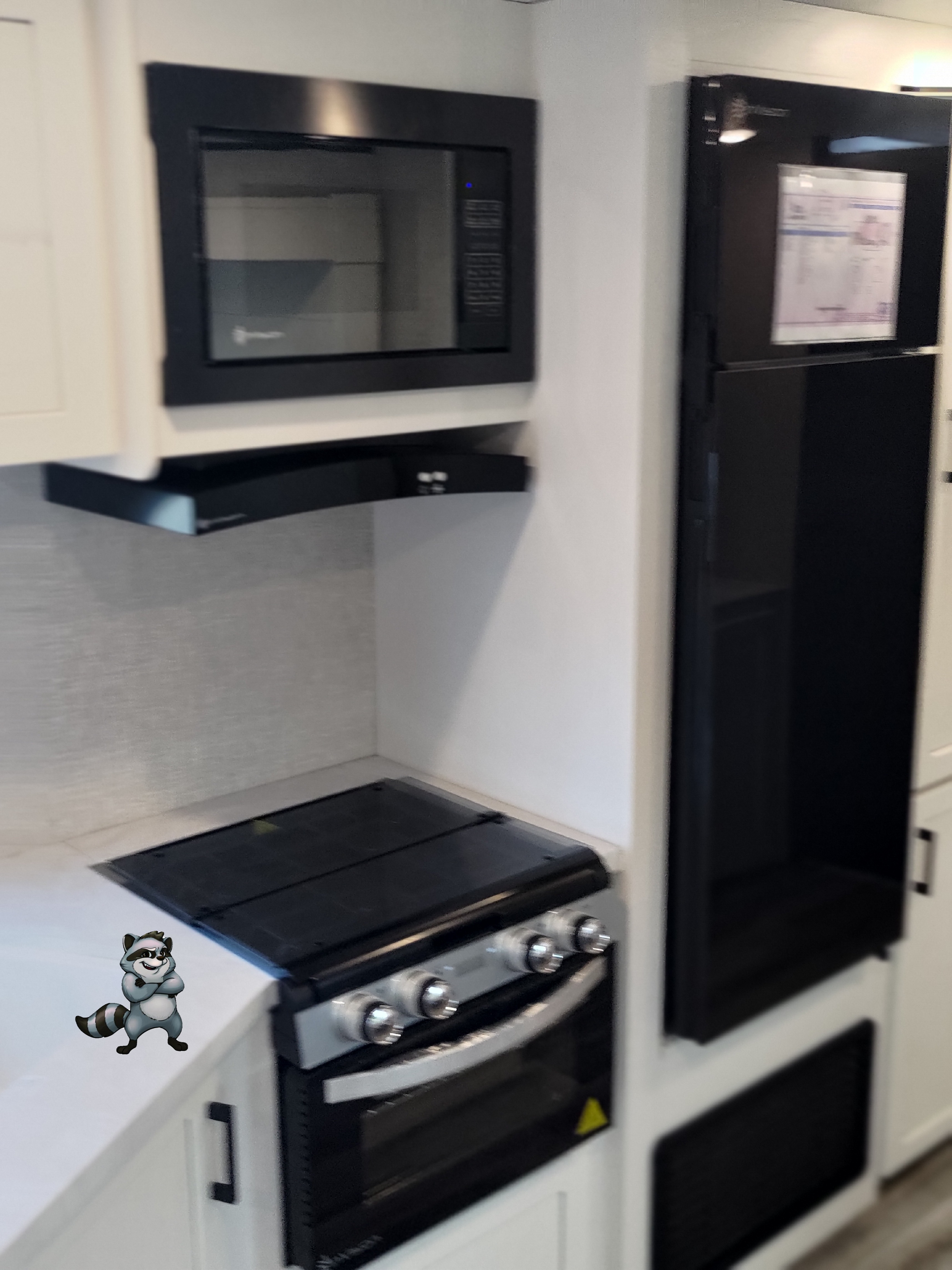 - 3‑burner cooktop + oven + microwave