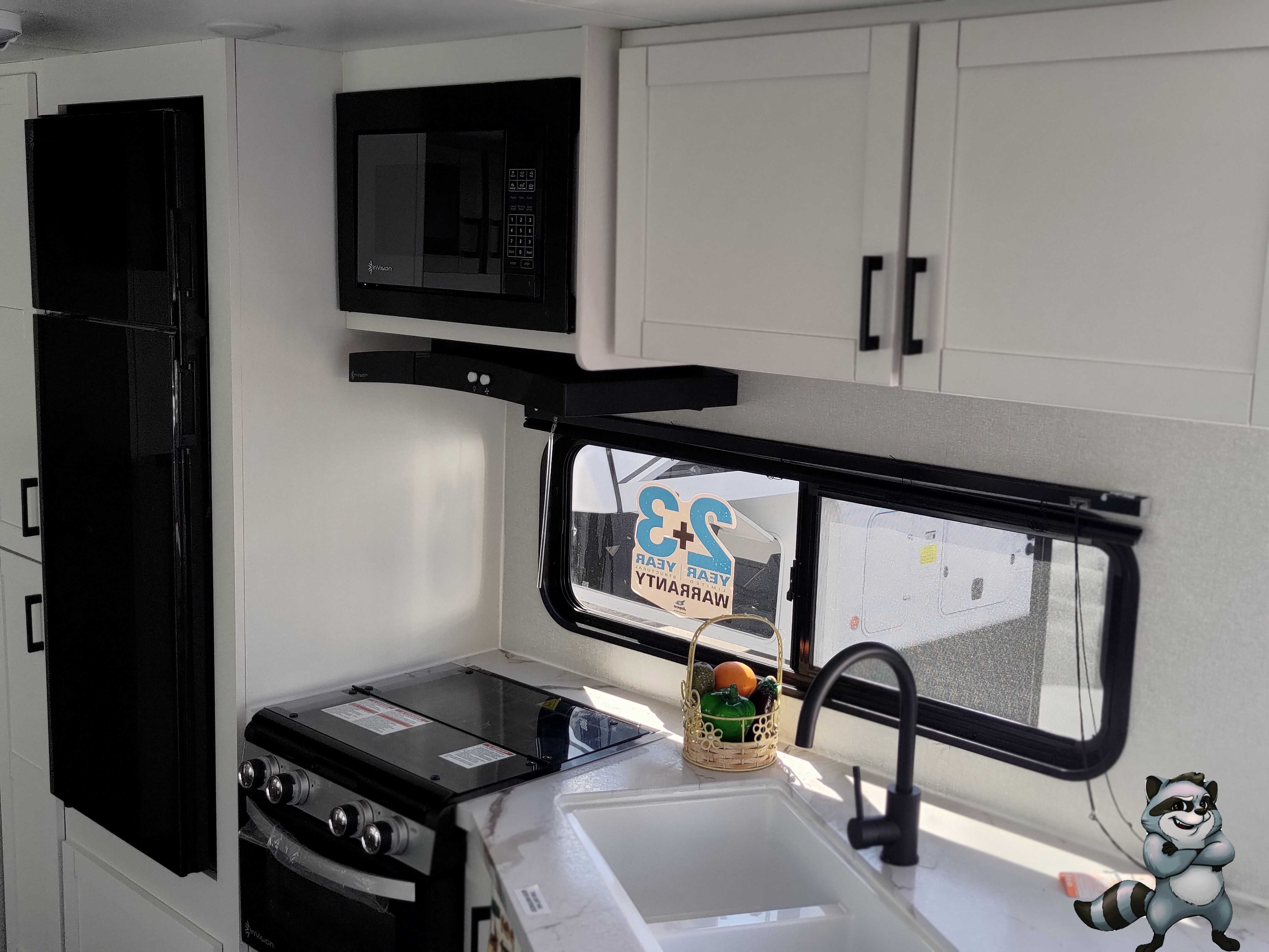 - 3‑burner cooktop + oven + microwave