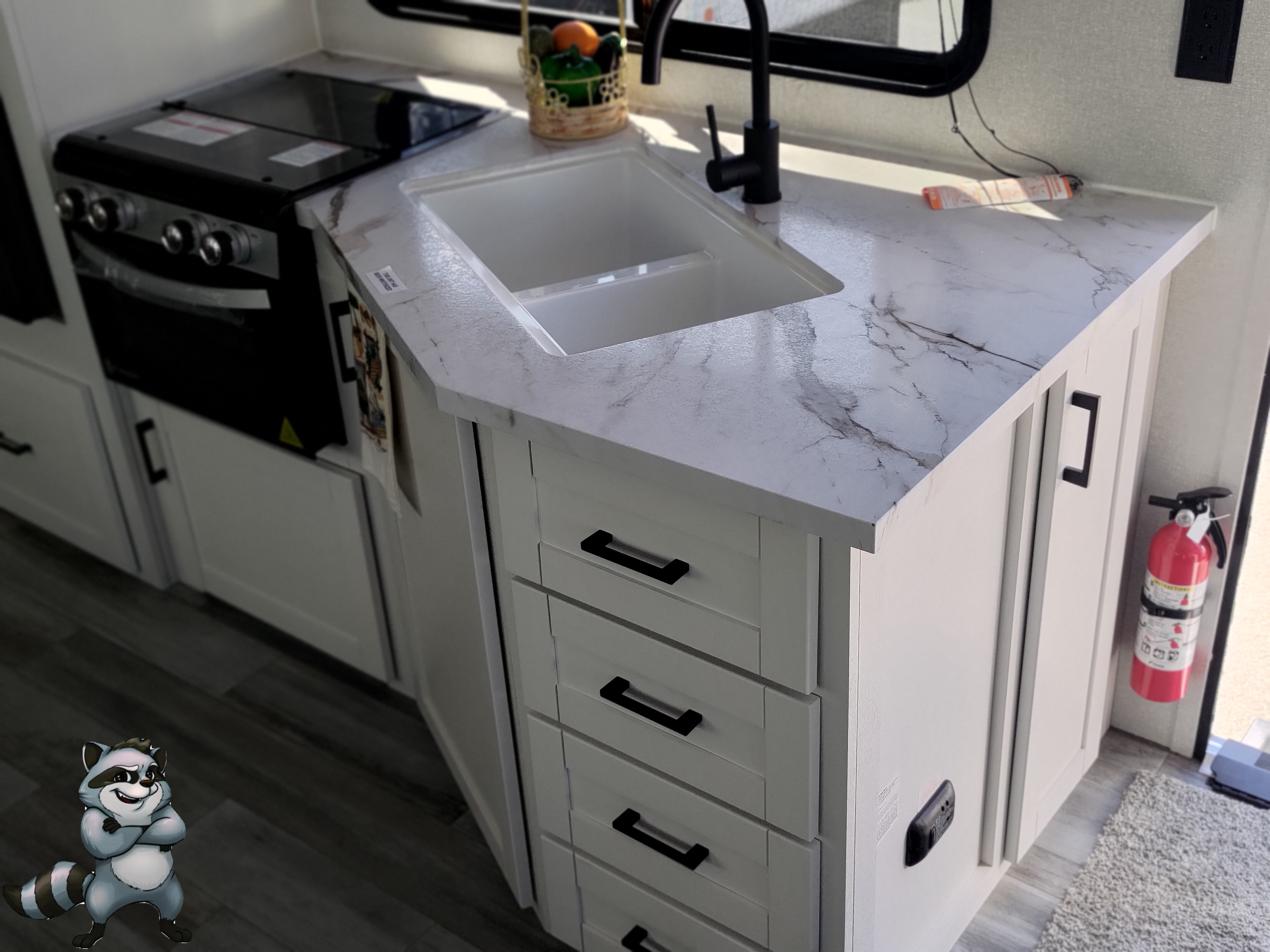 - Deep stainless‑steel sink