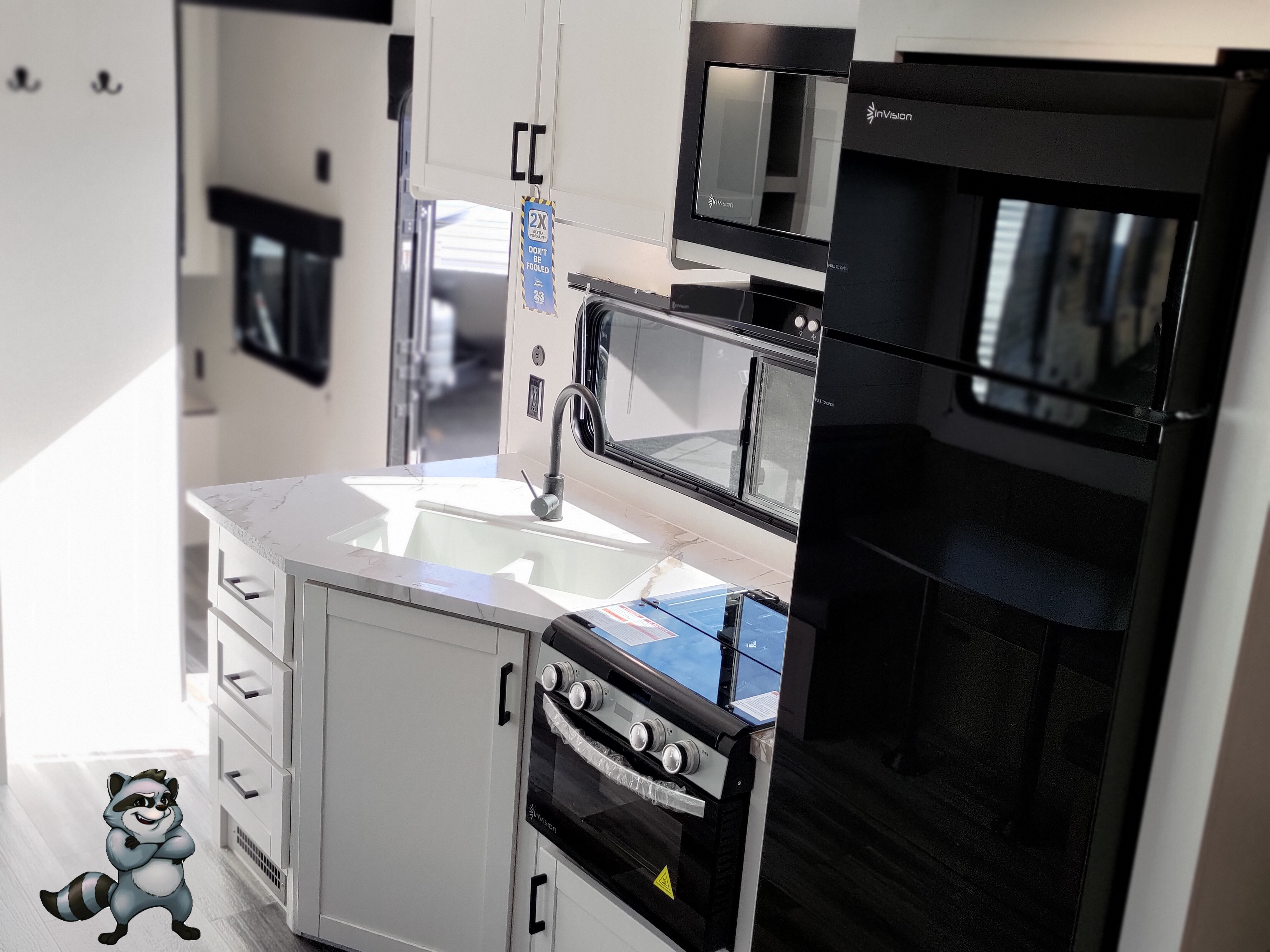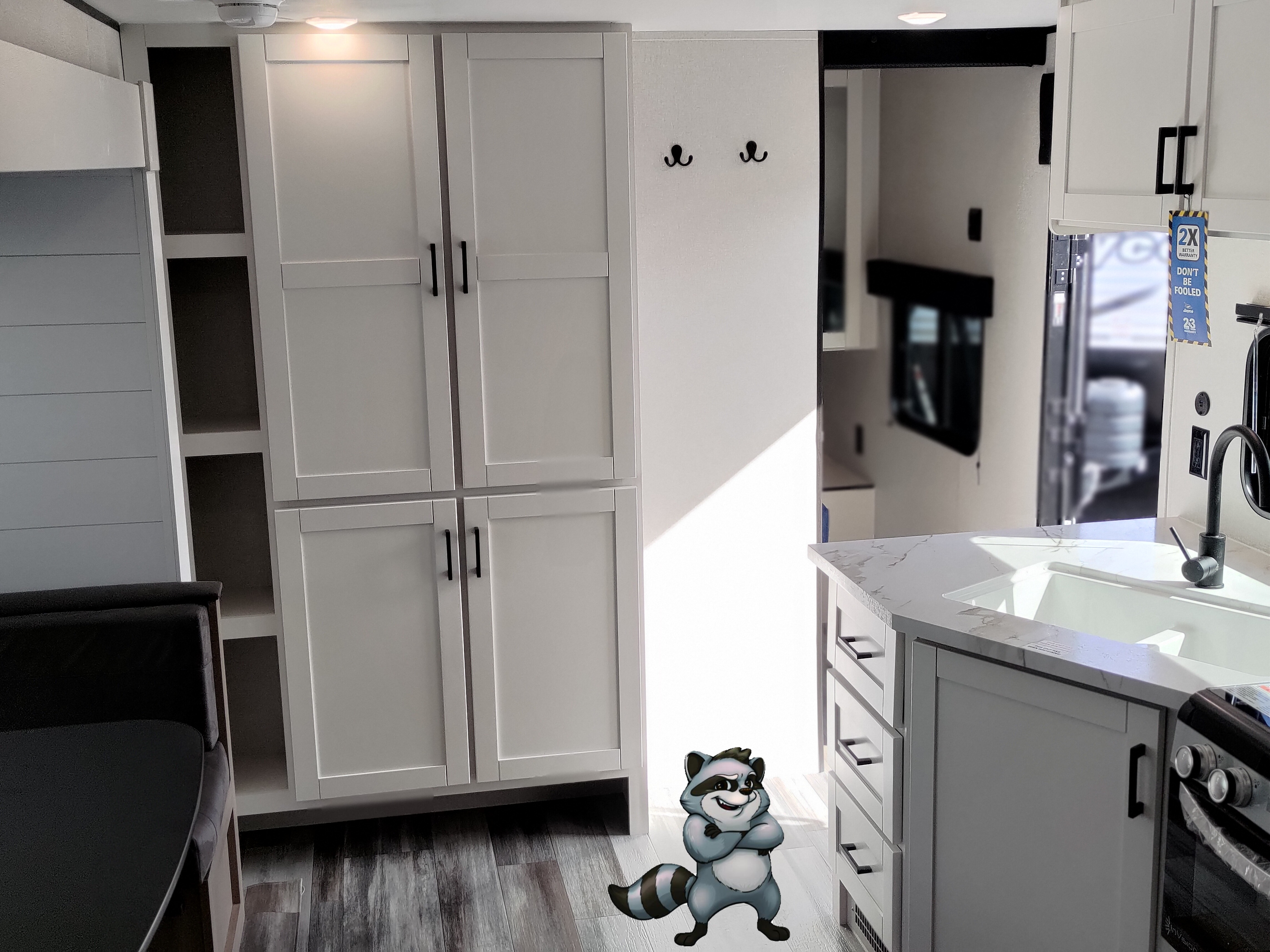 - Jack‑knife sofa or dinette converts for extra sleeping