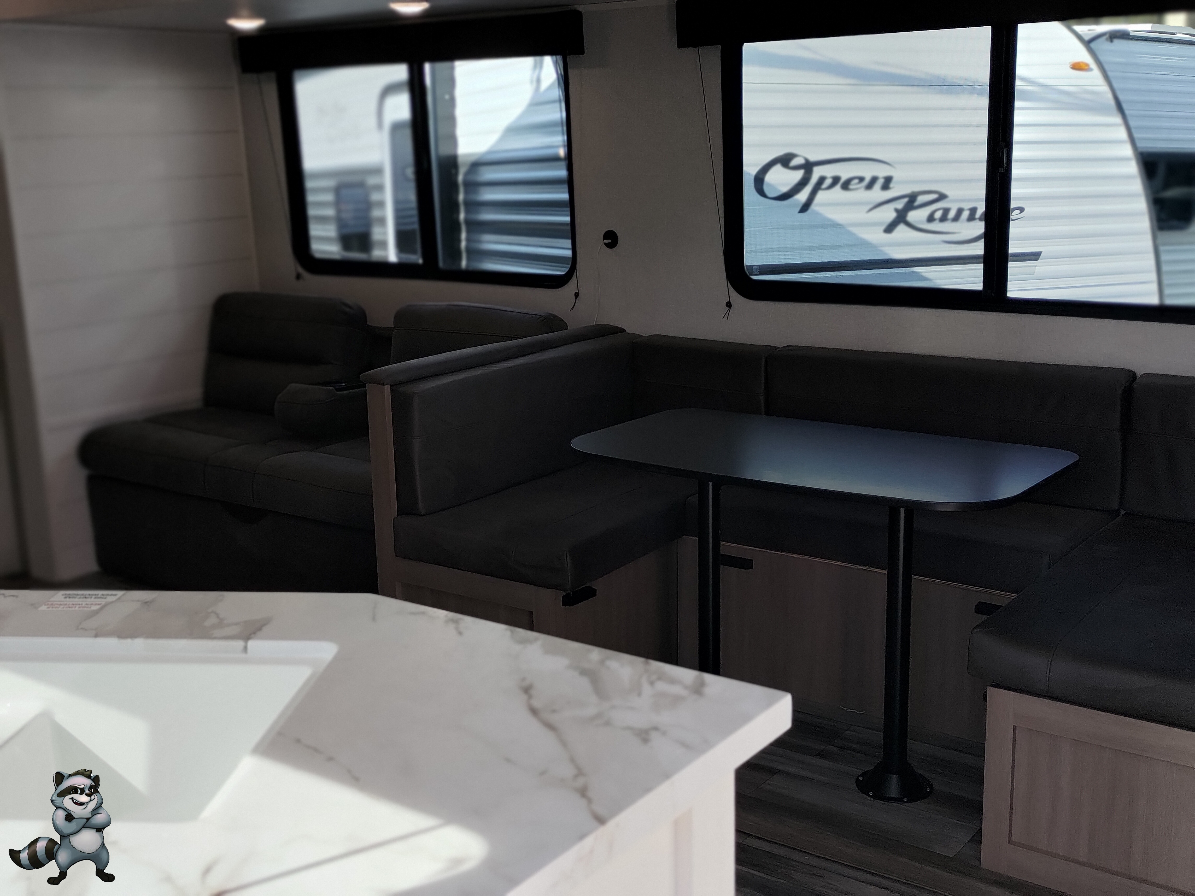 - Spacious U‑dinette or sofa/dinette slide (varies by package)