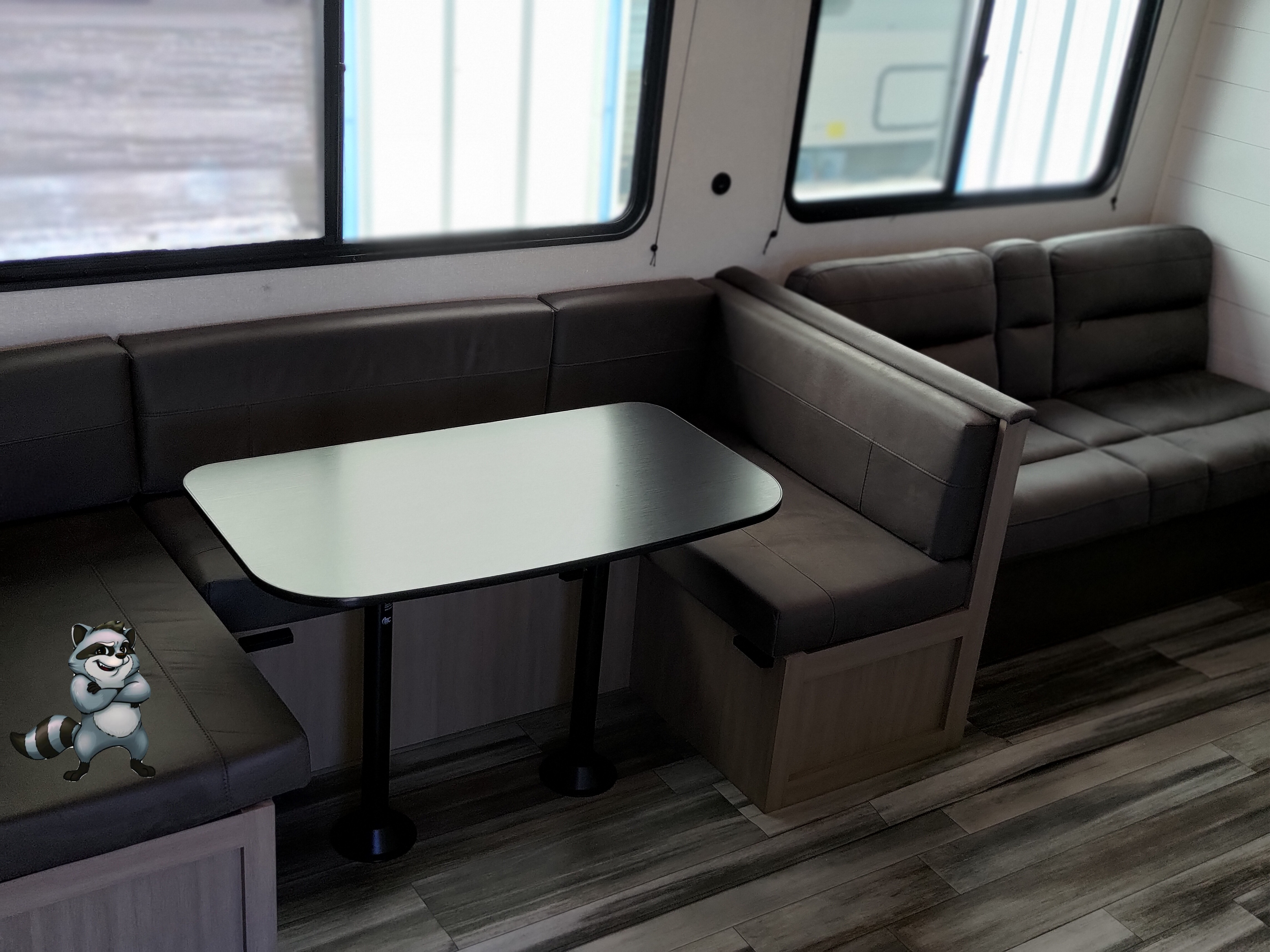 - Booth Dinette + Jack-Knife Sofa — both convert for extra sleeping space