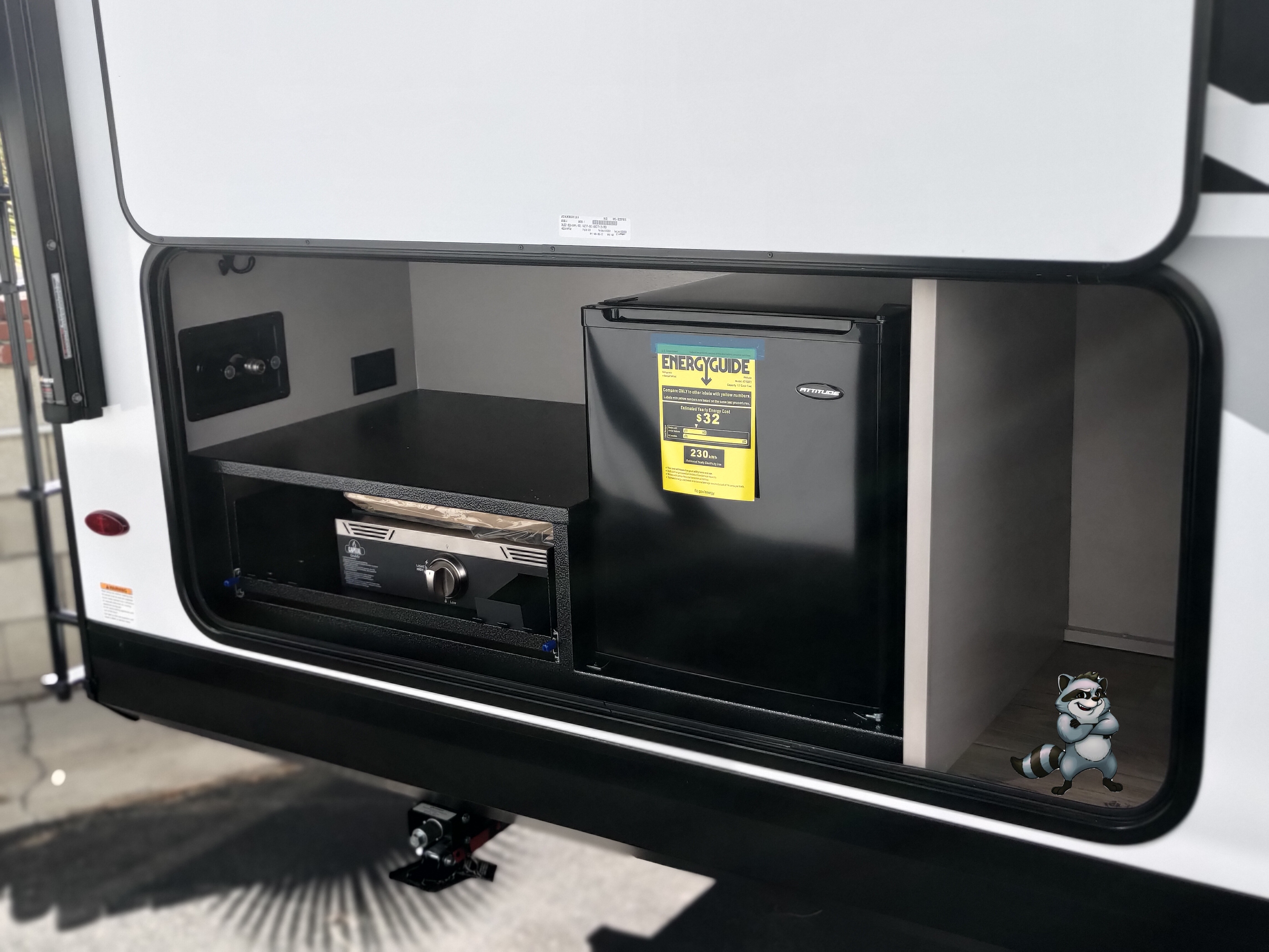 - Griddle + Mini Fridge under the awning
