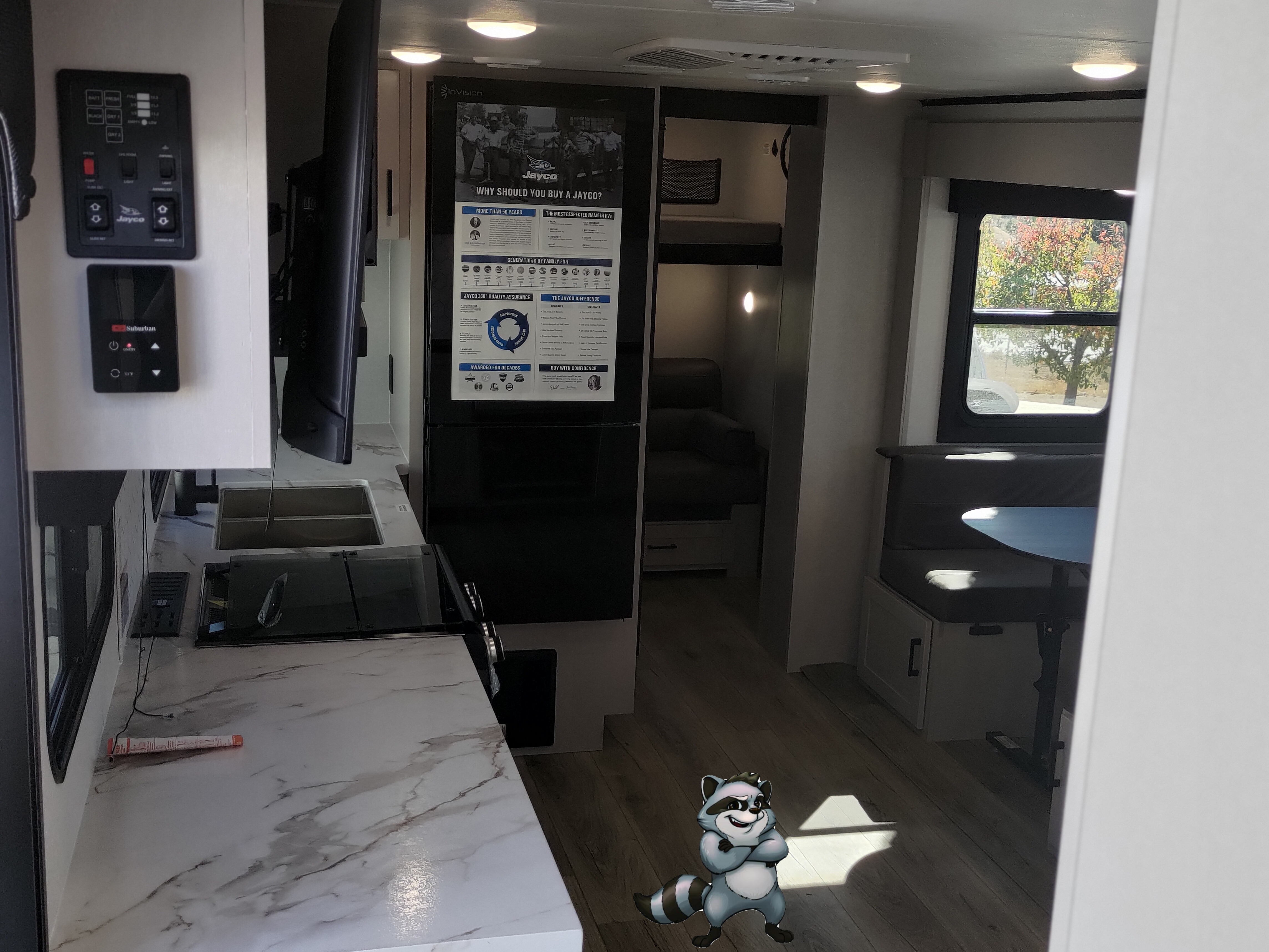 - Booth Dinette + Jack-Knife Sofa — both convert for extra sleeping space